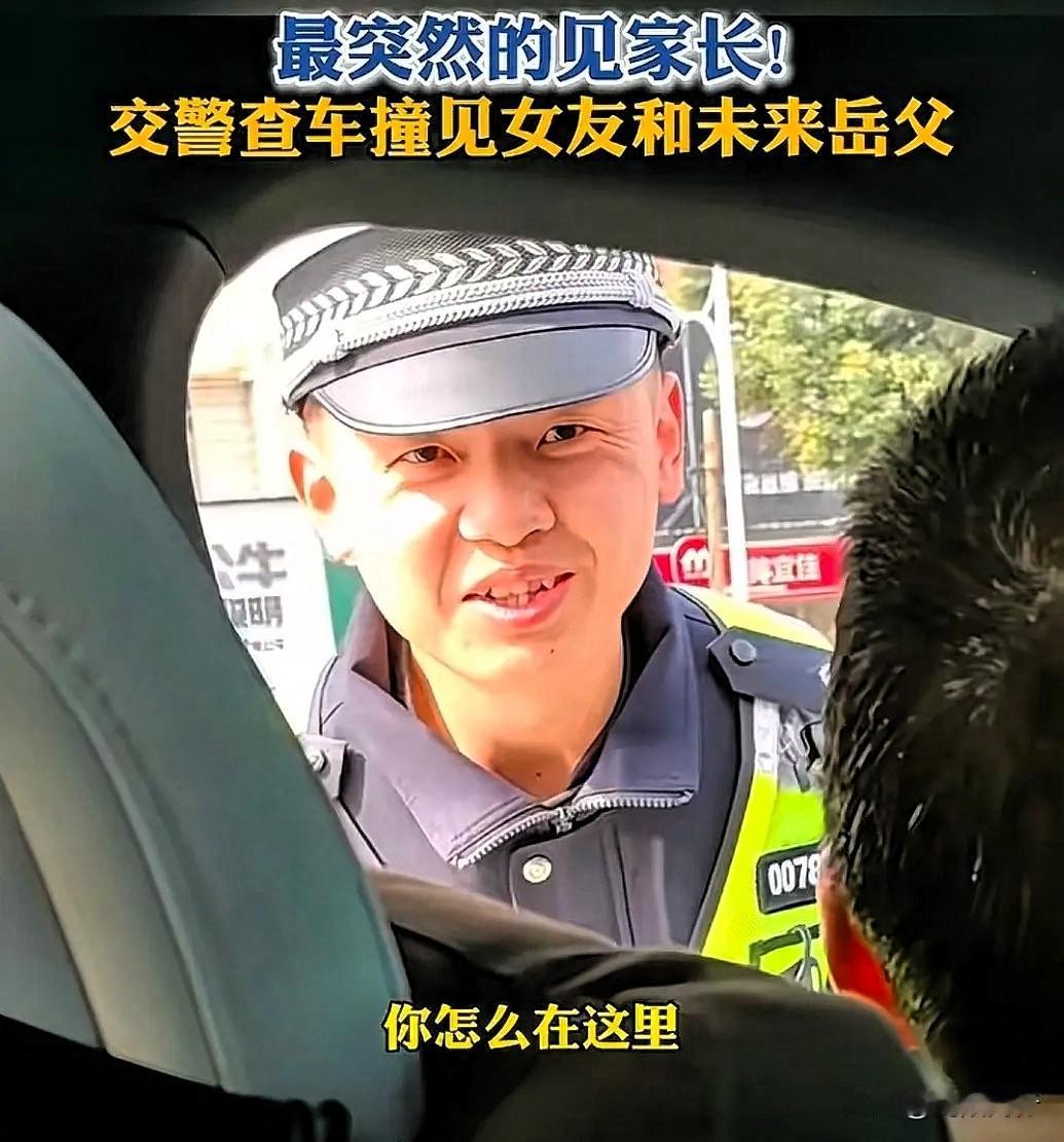 查酒驾秒变见家长,交警小哥当场脸红,网友笑疯。 湖北一小伙交警查酒驾,前一秒还严肃执法,一看车里是女友,再一看司机是她爸,当场脸红喊:叔叔好。 老丈人配合检查没喝酒,临走还悄悄竖大拇指,认可这小伙子认真负责。 我觉得这才是最靠谱的见面。工作有原则,做人懂礼貌,公私分得清,这样的年轻人谁不喜欢。 换作是你,遇到这种场面会咋办?