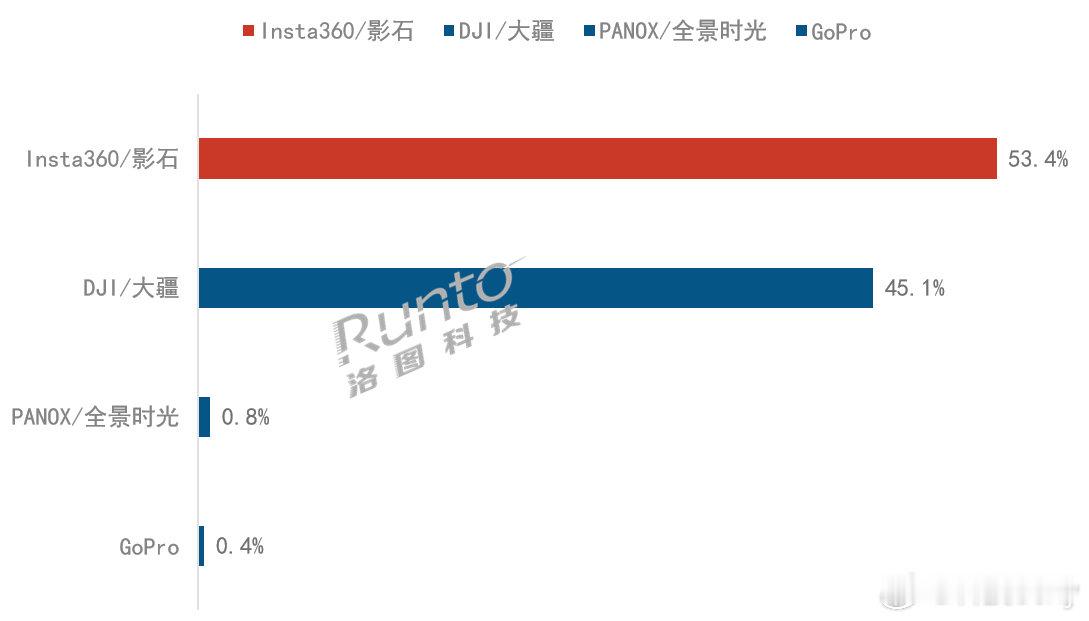 大疆杀疯了!洛图科技最新数据显示,2026年第1-6周,大疆以63.6%的绝对份额霸榜中国运动相机市场,在可穿戴、全景等新兴赛道更是全面突围。