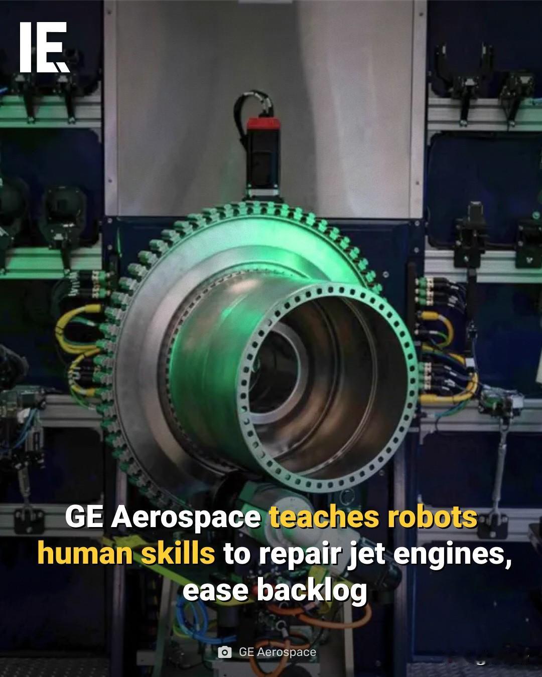 GE Aerospace(通用电气航空航天公司)在利用机器人模拟人类技能来维修喷气引擎,以缓解全球范围内的维修积压问题。 这项名为“Dance of the White Light Robots”的自动化技术目前主要在新加坡的自动化实验室进行。 核心技术与应用 捕捉人类技能: 资深技术人员正将他们积累数十年的“手感”和经验传授给机器人。例如,原本需要纯手工打磨的喷气引擎压缩机叶片,现在正通过自动化系统实现精准修复,其精度可达千分之几英寸。 白光机器人(White Light Robots): 这些 AI 引导的机器人配备了白光光学扫描仪,能像“芭蕾舞者”一样在复杂的零件表面移动,捕捉精细的 3D 数据并创建数字孪生,从而检测极其微小的裂纹、腐蚀或尺寸偏差。 Sensiworm 机器人: 一种柔性、可移动的“机器人蠕虫”,能深入引擎内部狭窄的缝隙进行无损检查和修复,而无需拆卸整个引擎。 解决维修积压的目标 由于新一代引擎的意外磨损和零部件供应紧张,全球航空公司面临长达数月的维修等待期。GE Aerospace 计划通过以下方式缓解这一困境: 提升产能: 在新加坡投资 3 亿美元升级自动化设施,目标是在不扩大场地面积的情况下,将维修量提升 33%。 缩短周期: 通过自动化修复关键零件(而非直接更换新零件),GE 目标将关键流程的周转时间减半。 降低成本: 自动化修复能显著降低航空公司更换高价零部件的成本。