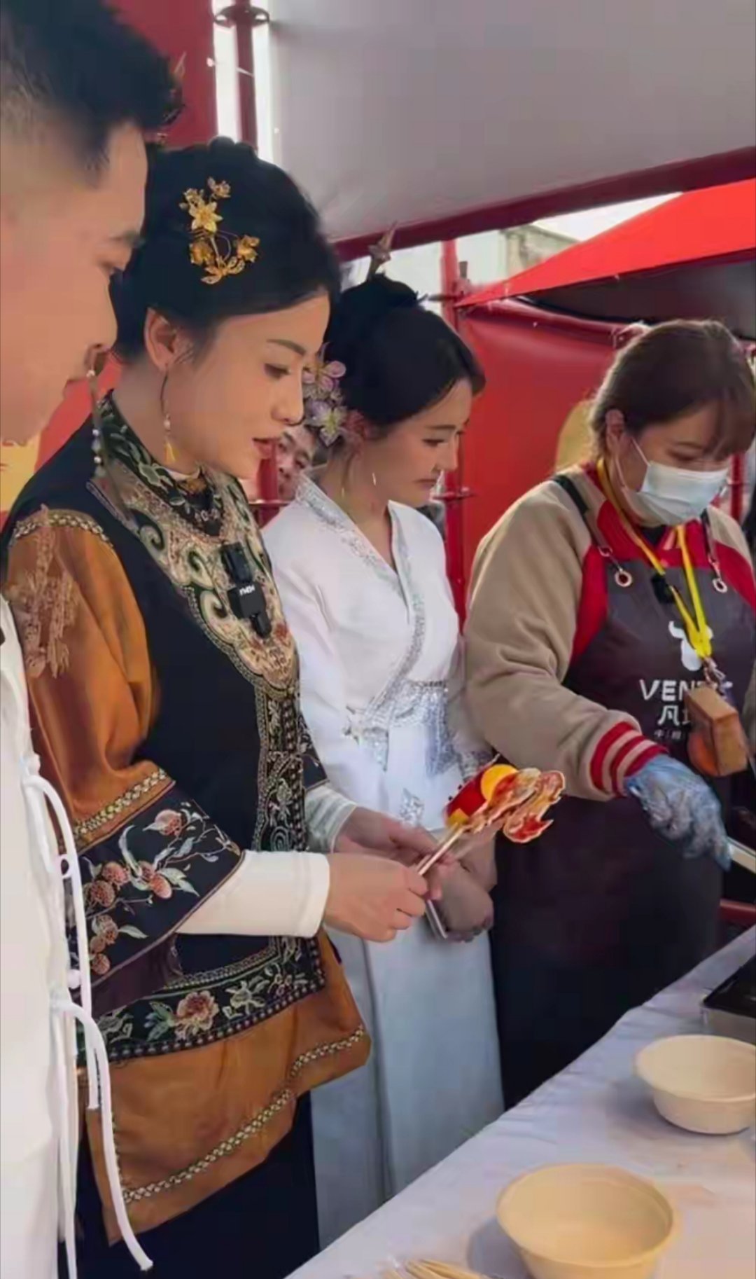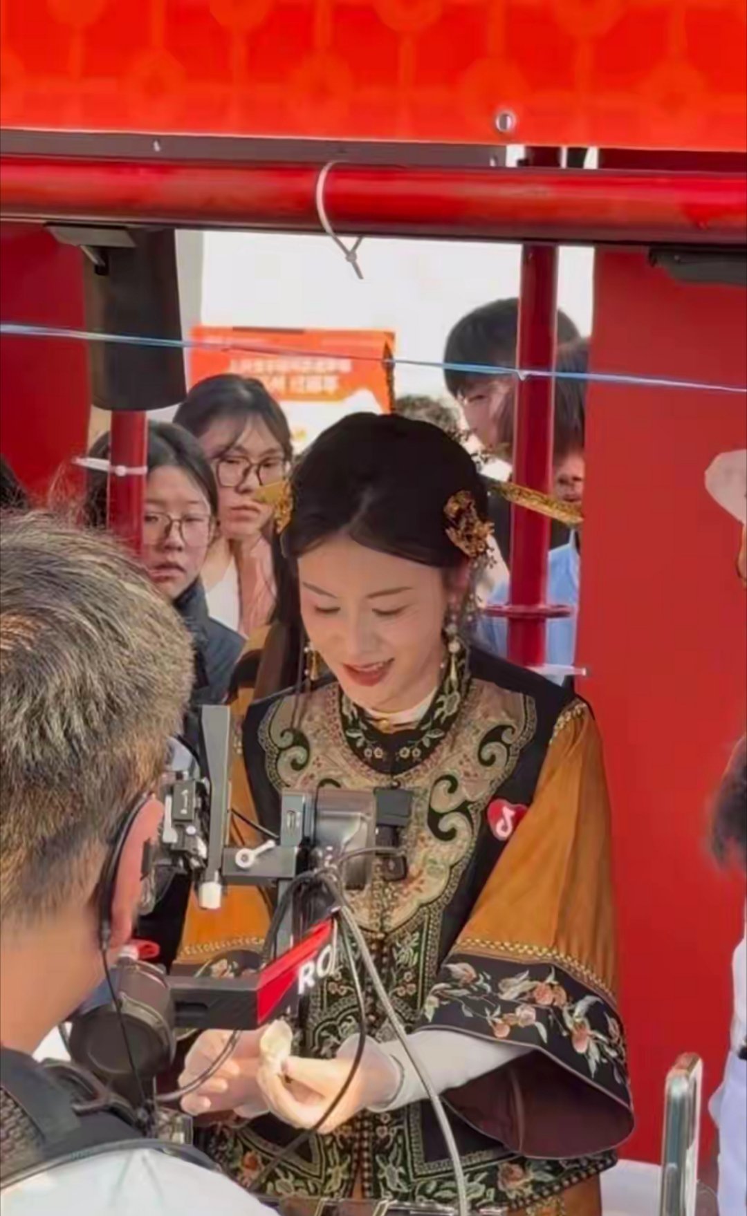 41岁叶一茜福州录节目,一身国风打扮惊艳路人,吃鸡排都这么贵气