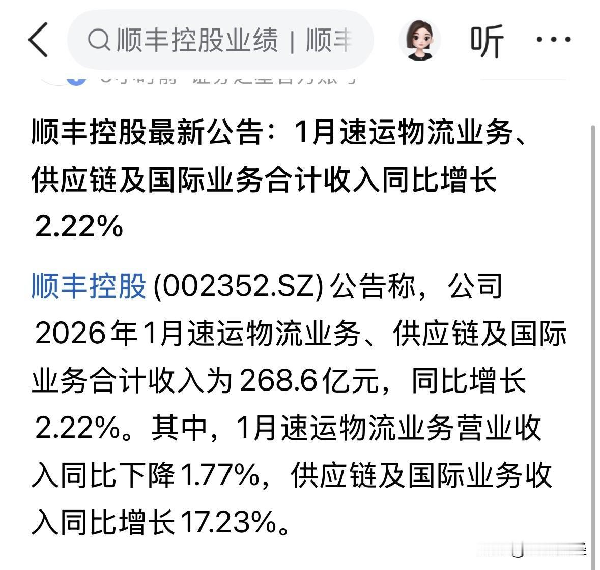 顺丰控股作为国内物流行业的龙头,这样的月报,仅2.22%同比增速,有啥意思? 如此月报,对于提振投资者信心有什么正在向意义,不如不发!!! 股东回报就算了,反正个人觉得,不如认真的思考如何回馈员工,提高社会效益! 乐呀财经