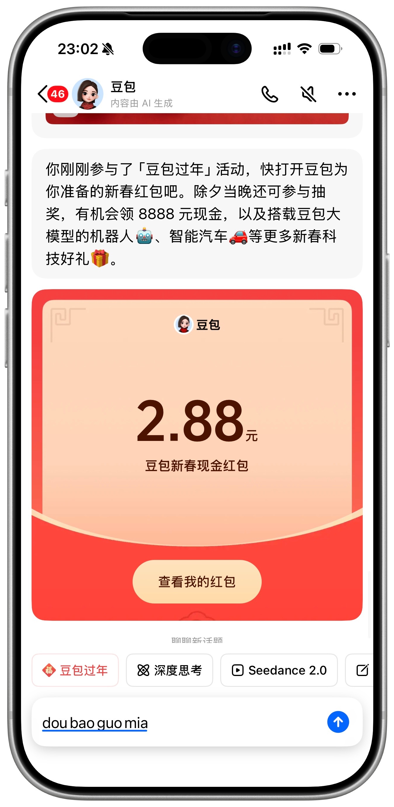 豆包红包 豆包也加入AI大战了,刚得了2.88元。有超过我的吗?
