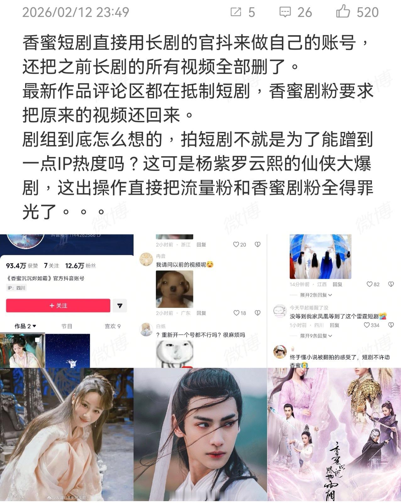 撕❶电影营救汪星人,剧开撕成毅粉丝 图3❷春节电影,惊蛰无声为首影片发行方淘票票被山西多家影院联名指控以停供密钥、切断售票系统等手段强制干预排片 图4电影大v为片方打抱不平 图5春节电影大片乱斗 图6❸杨紫新商务,粉丝不满,觉得资源降级 图7❹香蜜短剧直接用长剧的官抖来做自己的账号,还把之前长剧的所有视频全部删了 图8❺生命树播出不佳,张新成粉自信淬火年代演出效果,与杨紫粉同讨谁演得好 图9❻网友扒出她和白敬亭在同一家餐厅吃饭之后,白敬亭粉说早就分手,女方蹭,宋轶直接把微博背景换成了情侣在餐厅吃饭的漫画图 图10❼白日提灯简介修改,迪丽热巴粉控诉剧方打压女主人设,捧男主 图11