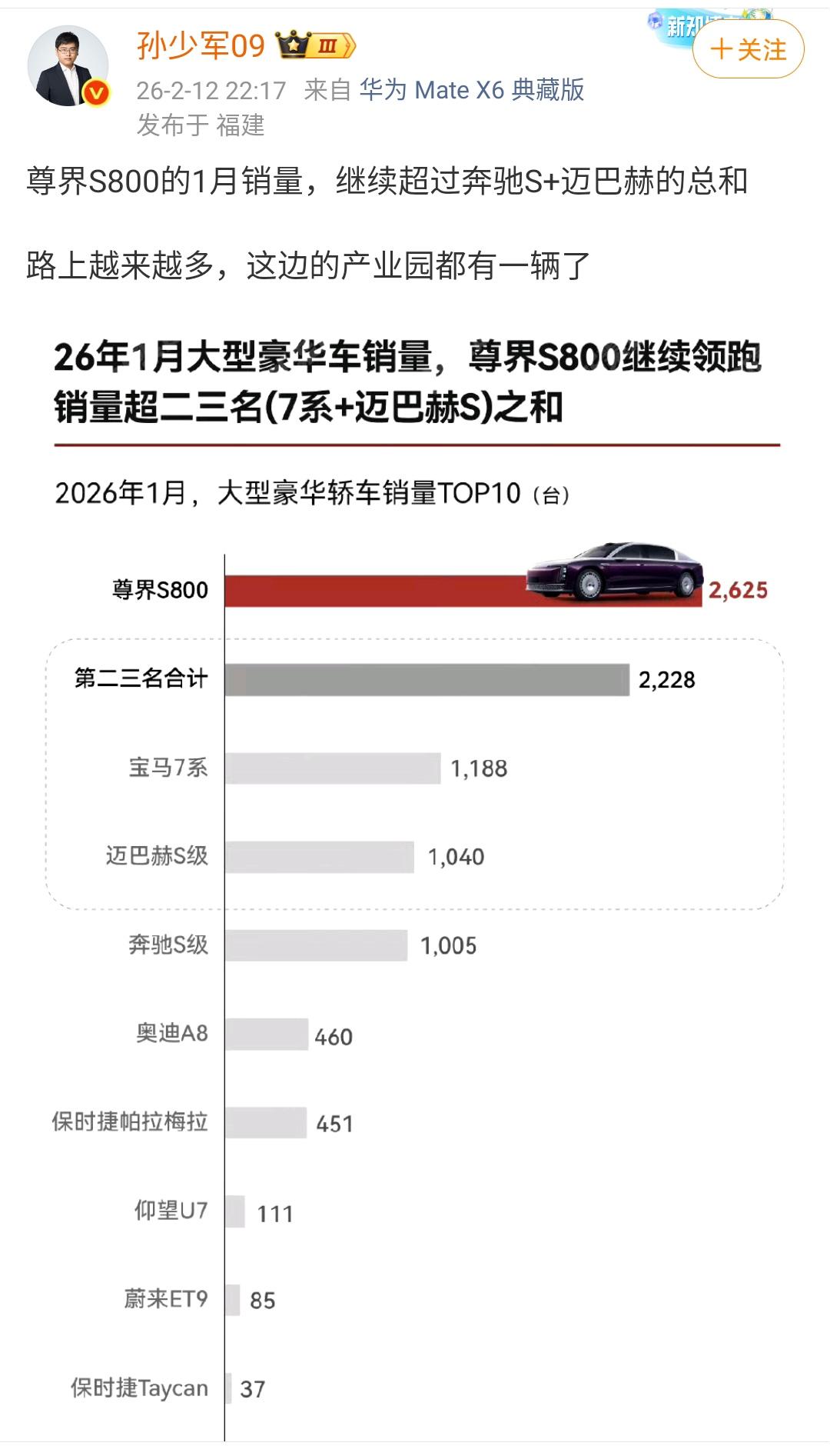 孙少军:尊界S800的1月销量,继续超过奔驰S+迈巴赫的总和! 小编也确实发现了这个车确实越来越容易见了,小编所在的小区就有人买了一辆,包括其他新能源汽车购买的人数也是挺多的,总体而言还是油车占大多数,毕竟车不像普通的消耗品,买了一辆还是会开很多年的。 随着近几年新能源汽车的发展,很明显可以看到,路面上的新车新能源比例在不断增加。
