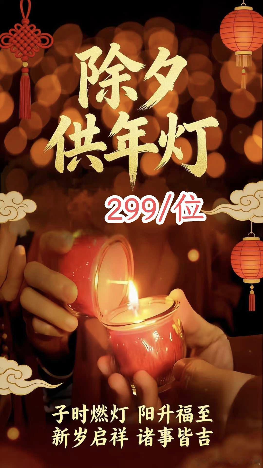 这一年奔波劳碌,最牵挂的还是家人安康;对新年的期许,也不过是平安顺遂。除夕子时,本道观启办供年灯法事,仅需299元,为您和家人点亮这盏“全年福灯”!子时头香相伴,心灯长明不熄: