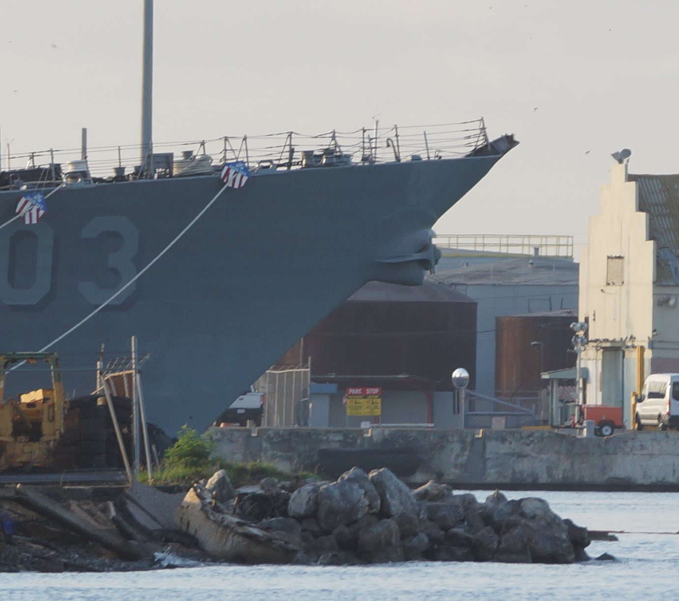 🔻美军“特鲁克斯顿”号的靠泊一侧很难看到左舷的情况,但从另一侧来看,至少船艏尖端似乎有一些损伤。🔻via Michael Bonet 热点现场海外新鲜事