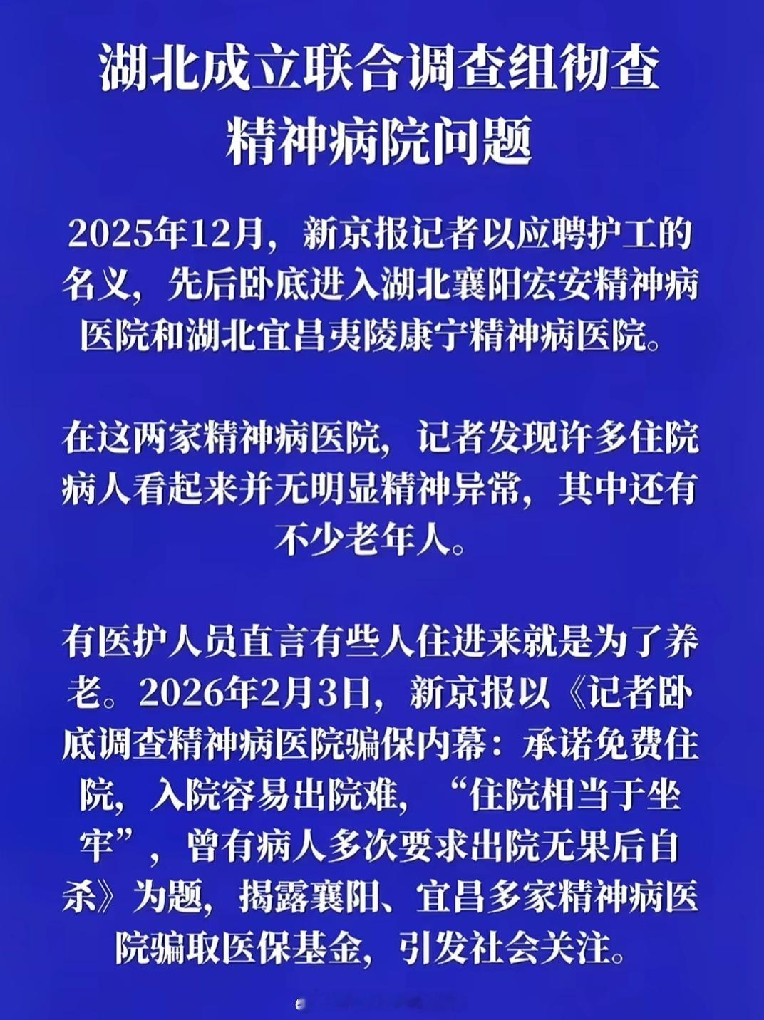 湖北精神病医院有关问题调查结果 湖北这起案件警示我们,监管的漏洞比疾病更可怕。严打之下,更要补上人性与制度的双重缺口。