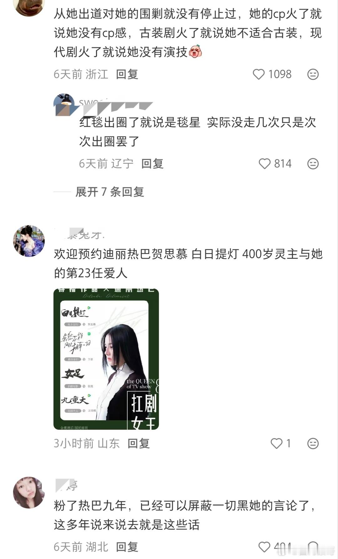 这倒是真的,我今天一查才发现内娱确实对迪丽热巴有非常严格的单独的一套标准,利剑玫瑰和枭起青壤的营销明明不算很多却一直背锅被骂,两部全加起来至今才2700多个热搜话题不如一些大剧一部的营销多,尤其利剑玫瑰只有可怜巴巴的1000个出头,最后还播的很不错很不错