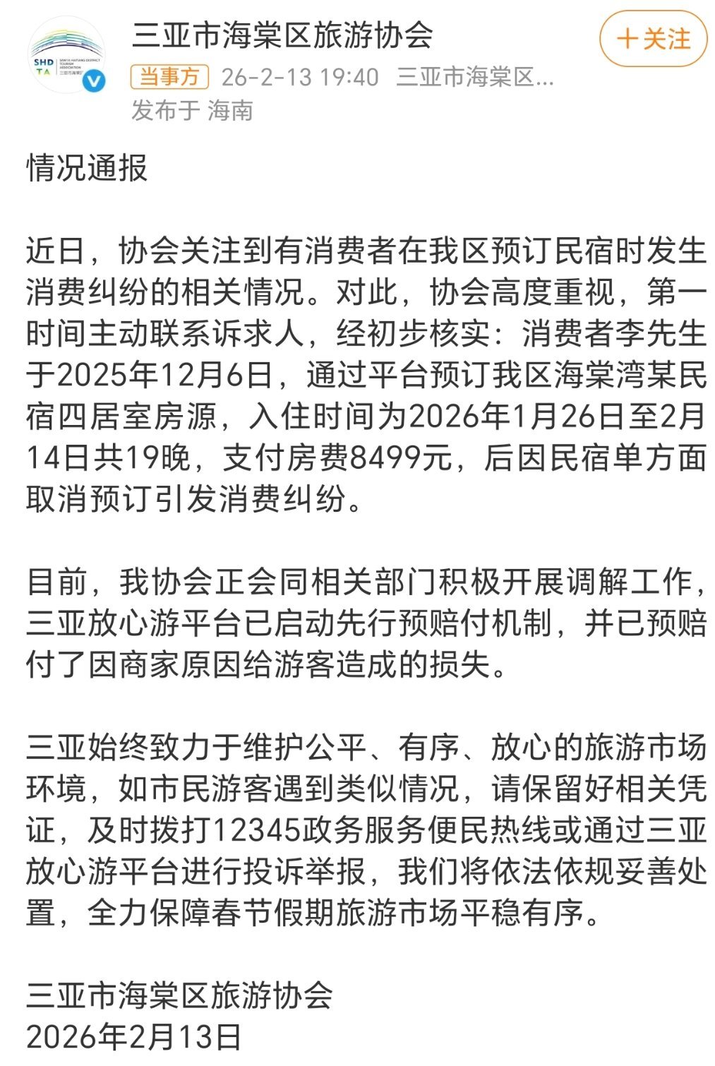 三亚通报8499元订民宿被临时毁约最近看到很多商家都有出现这种毁约现象,打开门做生意起码要讲究诚信吧,幸好三亚文旅处理反应迅速,没有让事情扩大严重化