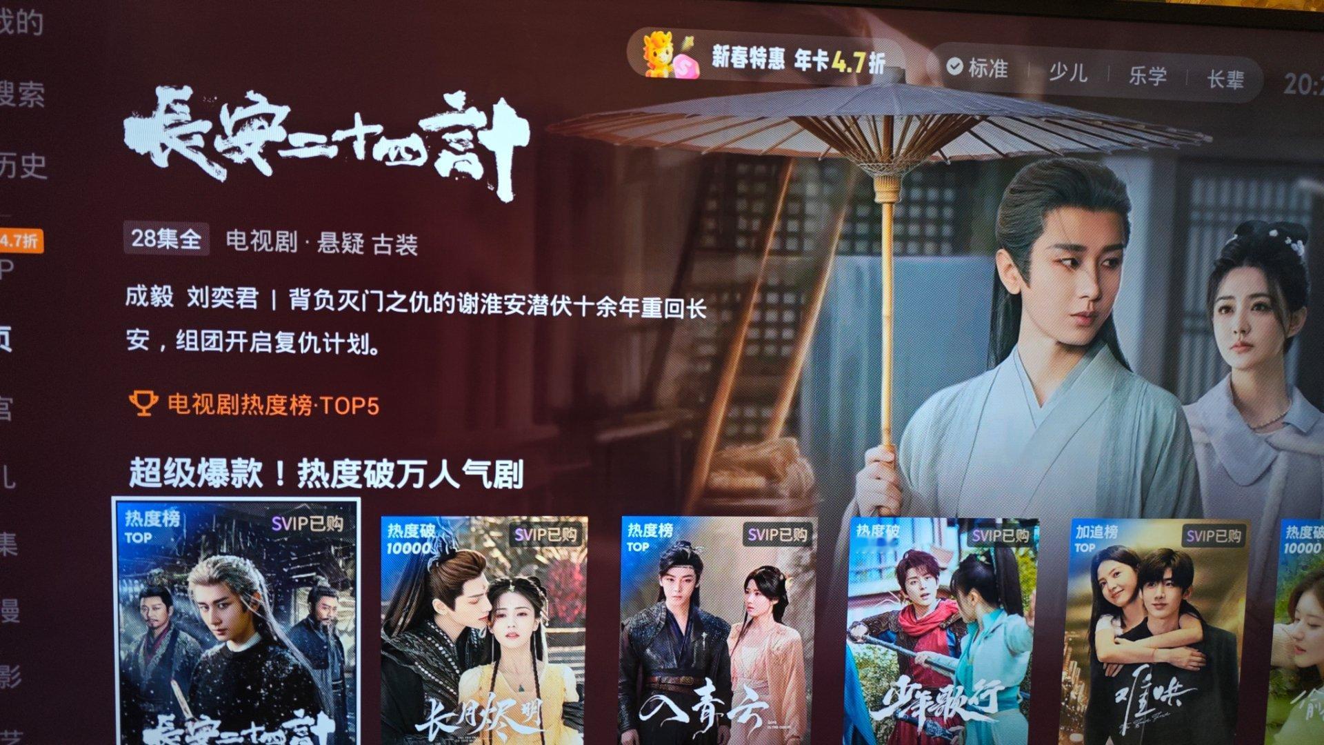 优酷酷喵主页推荐超级爆款剧,成毅《长安二十四计》排第一。(其实👖是知道谁火的。)