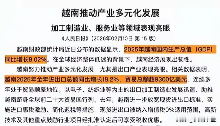 5年美国砸千亿美金,结果养个"中国代工厂"?越南制造全是假象! 麻烦看官老爷们右上角点击一下“关注”,既方便您进行讨论和分享,又能给您带来不一样的参与感,感谢您的支持! 过去五年,美国投入千亿美金试图将越南打造成新的世界工厂,以此实现对华供应链脱钩与产业转移。这场声势浩大的布局看似成效显著,越南对美出口连年攀升,却藏着一个无人敢点破的真相。 越南制造业的繁荣,本质上是中国供应链的外延与组装车间。从电子元器件到纺织面料,从机械设备到化工原料,越南生产高度依赖从中国进口的核心部件与中间品。 越南每出口一美元商品,就有近八成价值来自中国的原材料与零部件。对美顺差越大,越南从中国进口的规模就越高,形成越繁荣越依赖的铁律。 美国原本希望通过扶持越南绕开中国,结果却让越南成为中国产业链的下游环节。订单流向越南,利润与核心环节却牢牢留在中国,脱钩变成了换个地方继续合作。 越南GDP增速常年保持在高位,一度被视为全球经济的优等生,但其增长质量与产业结构存在致命短板。本土企业话语权微弱,高端技术与品牌完全掌握在外资手中。 越南制造业长期停留在组装、加工、贴牌等低附加值环节,缺乏自主研发与核心技术。既留不住成本敏感的低端产能,也无法切入高端制造与科技创新赛道。 基建与配套能力不足,成为越南制造业无法突破的天花板,电力短缺、物流低效、工人流失频繁发生。外资企业迁到越南后,常常面临停工、涨价、效率低下的现实困境。 完整工业体系不是靠政策补贴与外资涌入就能速成,而是几十年市场竞争与产业链协同的结果。中国拥有全球最全工业门类、高效物流与庞大工程师红利,这是越南短期无法复制的优势。 中国制造业早已跳出低端代工,向新能源、半导体、智能装备、航空航天等高精尖领域升级。新三样领跑全球,自主品牌出海,中国制造正在向中国创造稳步转型。 越南则被困在全球价值链底端,只能做搬运工与组装厂,难以形成自主产业生态。美国的产业转移策略,最终只是把组装环节搬走,核心供应链依然离不开中国。 美国试图用资本与地缘手段重塑全球供应链,却违背了制造业的基本规律。产业集聚、配套成本、技术积累与市场效率,最终会压倒短期政治意志。 越是强行脱钩,全球供应链对中国的依赖就越隐蔽、越牢固,越南只是中间的一层马甲。美国花重金打造的对手,到头来还是给中国打工的角色。 越南政府也意识到产业空心化的风险,试图推动本土制造升级与技术自主,但收效甚微。没有上游产业链支撑,所有高端化目标都只是空中楼阁。 大量外资企业在越南布局后发现,离开中国物料与设备,生产线根本无法运转,成本反而更高。所谓供应链转移,不过是把中国的零件运到越南贴个标签再出口。 这种“洗产地”模式看似绕开了关税壁垒,却没有改变中国制造的核心地位。越南制造越火爆,中国的中间品出口就越旺盛,双赢的假象里藏着单边依赖。 全球制造业格局早已定型,中国是中心枢纽,东南亚是外围配套,这是市场自然选择的结果。政治可以引导方向,但无法扭曲成本与效率的铁律。 美国耗费巨大人力物力,最终只是把中国工厂的最后一道工序搬到越南。源头、技术、设备、材料依然在中国,越南只是一个更大的组装车间。 这也证明,中国制造的竞争力不是靠廉价劳动力,而是靠体系、效率与创新能力。短期转移无法动摇根基,长期竞争只会拉开差距。 未来越南仍会承接部分低端产能,成为全球供应链的重要一环,但永远无法取代中国的世界工厂地位。所谓替代论、脱钩论,在产业现实面前不堪一击。 美国的战略误判在于,以为可以用资本重建一套工业体系,却忽略了制造业的长期积累属性。绕了一大圈,全球供应链还是回到以中国为核心的原点。 越南制造的假象终会被戳破,真正的制造业强国,靠的是全链条掌控力与技术自主权。中国正在这条路上稳步前行,而越南与美国,还在原地打转。 这场持续五年的供应链博弈,最终以戏剧性的方式收尾:千亿美金砸下去,养出的不是对手,而是更依赖中国的下游伙伴。所谓替代,不过是一场自欺欺人的闹剧。