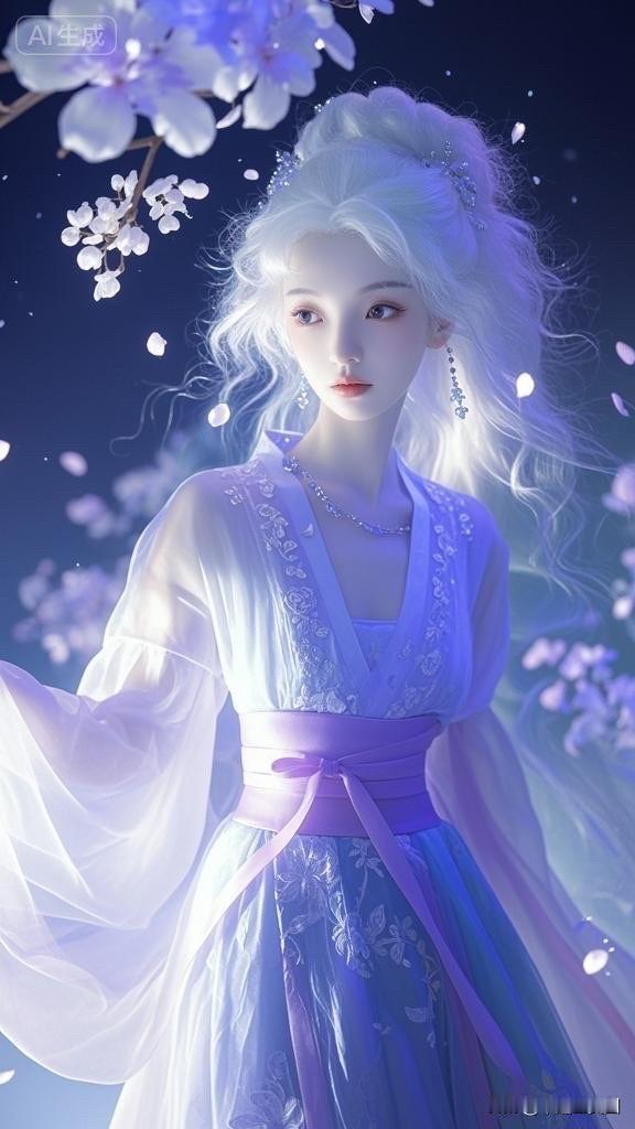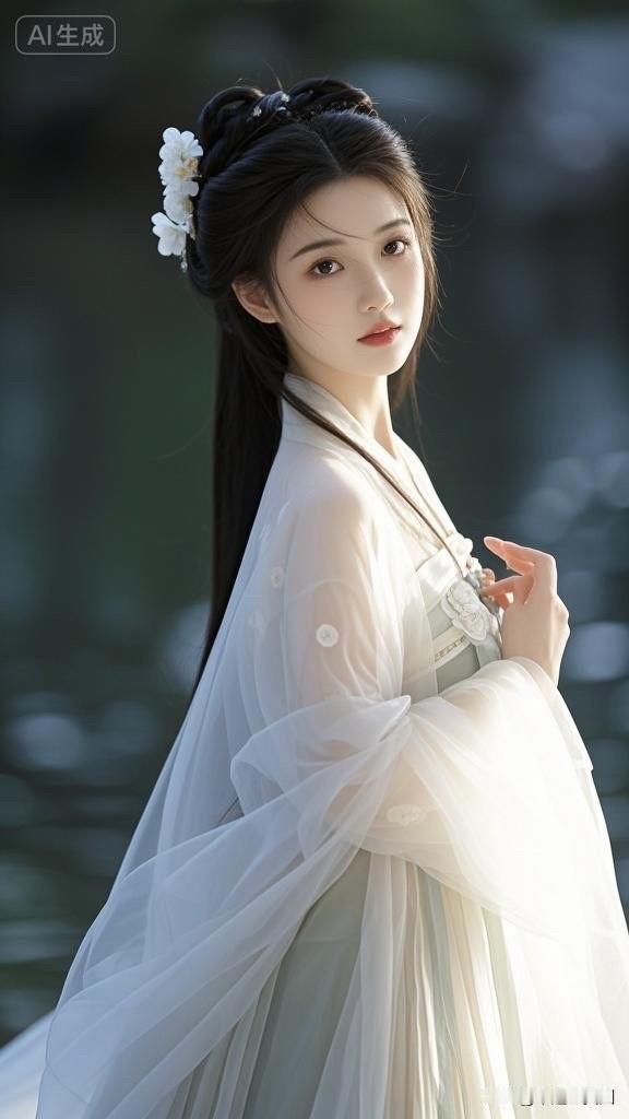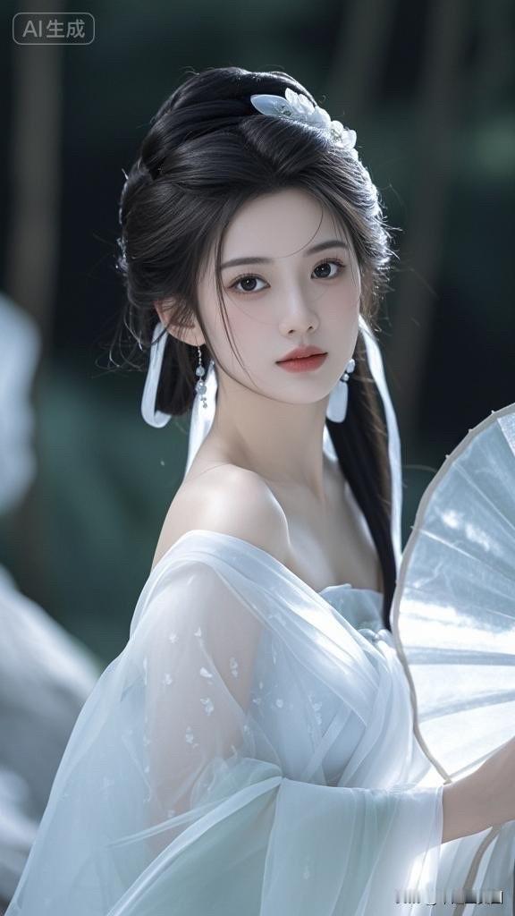 仙气飘飘的古风美人,梦幻的森林背景,宛如画中走出的仙女。