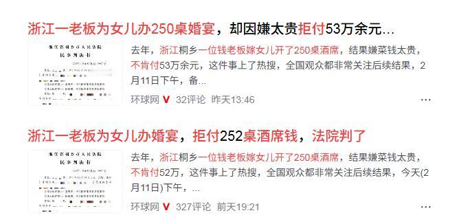 浙江,一老板嫁女儿大摆250桌婚宴拒付酒席钱,法院判了!网友:你说他不要脸吧,他
