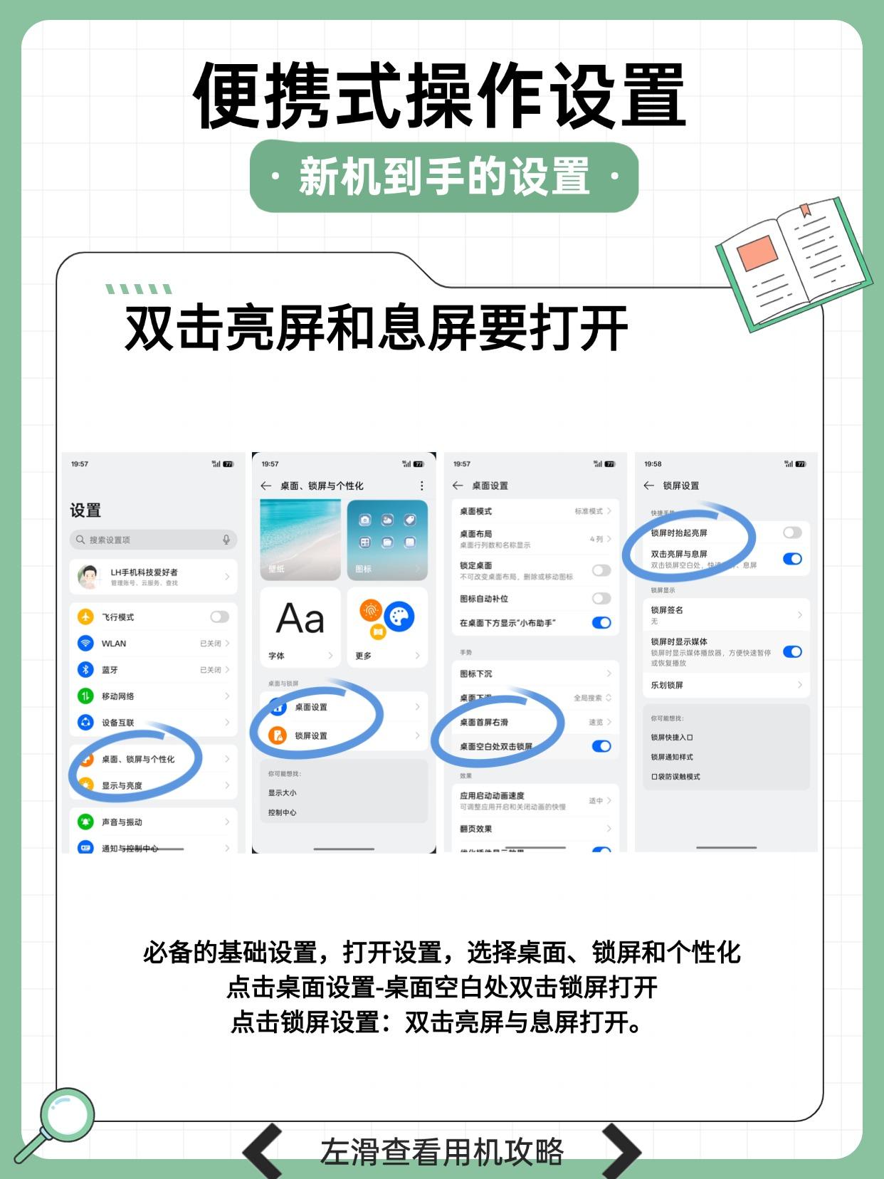 首先,一加Turbo6到手后,先打开设置去把双击亮屏和双击息屏打开,这个功能对大屏幕手机很友好。一般新机默认关闭,所以大家可以手动打开。