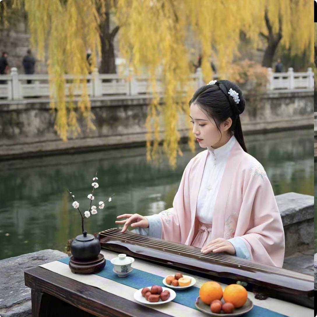 上联:石上流泉调古琴 下联:林间落叶诉秋声