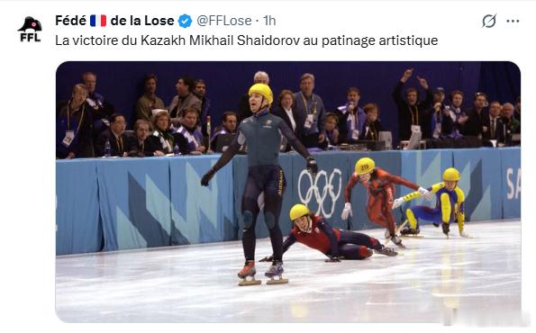 哈,外国网友用短道速滑上的经典一幕。来形容沙依多罗夫的男子花滑的夺冠。