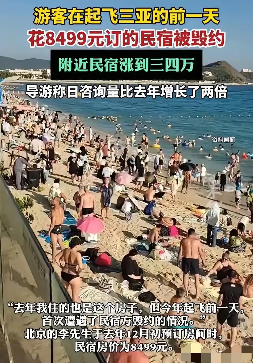 这有点过分了吧!海南三亚,北京的李先生提前三个月订好民宿,花了8499元,就想带着家人在春节住上大半个月,吹吹海风尝尝清补凉。 谁能想到,就在全家收拾好行李、准备起飞去三亚的前一天,李先生突然接到民宿老板的电话,说房子“水管爆了”“没法住人”,要单方面毁约。一开始他还真信了,想着人家也不容易,大过年的出这种事,那就退钱吧。结果转头一查,才发现根本不是那么回事——他家订的那套民宿,在平台上重新挂出来,价格直接翻了好几倍,附近同类型的房源更是涨到了三四万,摆明了就是看春节旺季来了,想坐地起价,把之前订便宜的客人踢走,好赚黑心钱。 李先生气不打一处来。去年他也是住的这套房,老板还挺热情,今年怎么就变了脸?他试着和对方沟通,对方要么不回消息,要么就说“爱住不住,不住拉倒”,态度嚣张得很。他又去找平台投诉,平台也只是打太极,说会“协调”,但协调来协调去,最后也只给了几百块的补偿,根本解决不了问题。眼看着机票不能退,家人的期待落了空,李先生只能临时花高价再找房,好好的春节旅行,硬生生变成了一场窝火的闹剧。 这种事在三亚不是第一次发生了。每到春节,这个被称为“东北第四省”的旅游城市,总会爆出各种宰客新闻:海鲜店缺斤少两、出租车漫天要价、民宿毁约涨价……今年尤其离谱,导游都说,现在的日咨询量比去年翻了两倍,游客多了,商家的胆子也跟着大了。他们算准了游客春节出行的刚需,算准了大家不想扫了兴,就敢肆无忌惮地毁约、抬价,把好好的旅游胜地,变成了一个“宰客陷阱”。 这种行为背后,是整个行业的底线失守。提前几个月规划行程、掏了钱,最后却成了别人砧板上的肉,想怎么宰就怎么宰。这种“赚快钱”的短视行为,不仅寒了游客的心,也在一点点消耗三亚这座城市的口碑。当大家提起三亚,想到的不是碧海蓝天,而是“宰客”“毁约”“坐地起价”,那这座城市的未来,又在哪里呢? 各位读者你们怎么看?欢迎在评论区讨论。