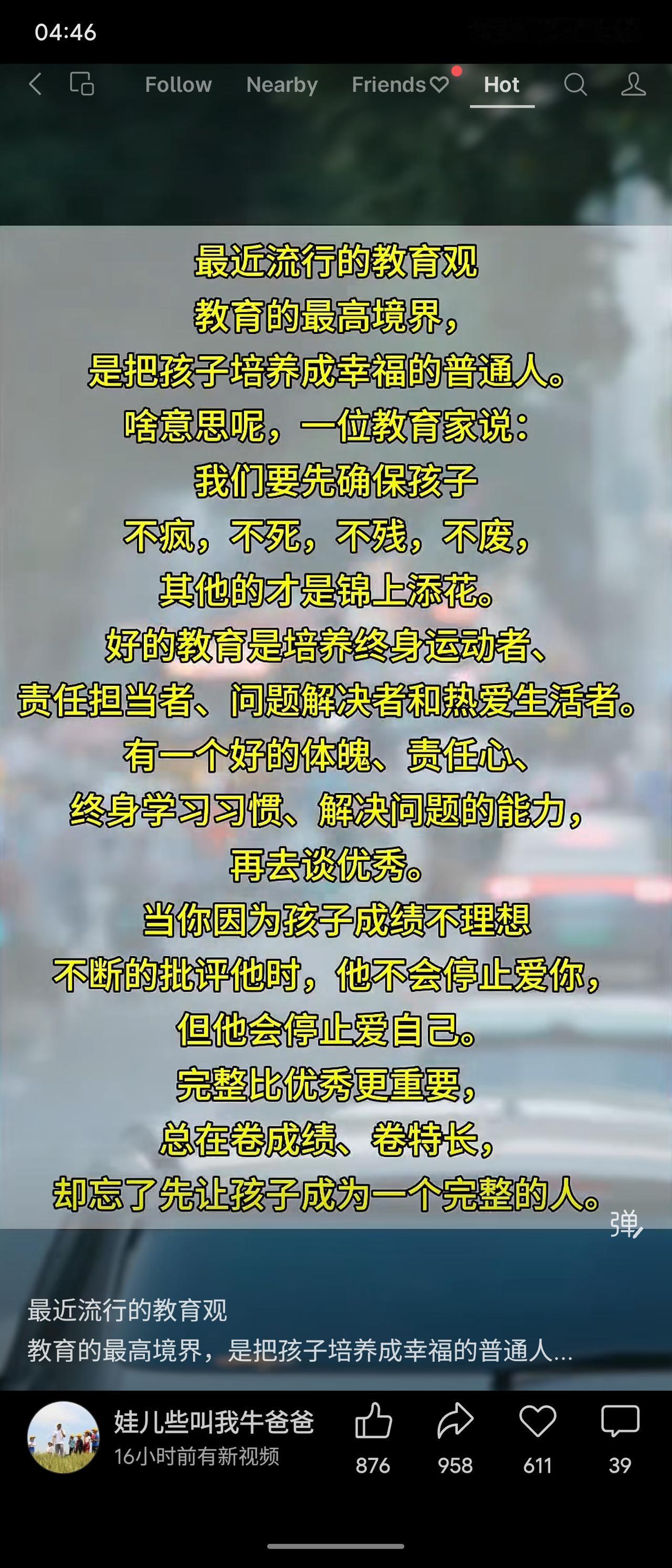 最新教育观强调:培养“幸福的普通人”是教育的最高境界。要先确保孩子身心健康(不疯、不死、不残、不废),再谈优秀。完整比成绩更重要,过度批评会让孩子停止爱自己。