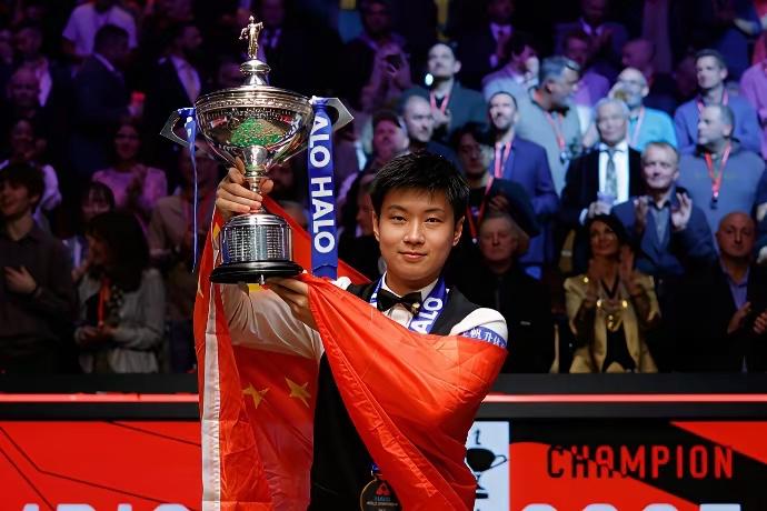 历史级爆发!2026斯诺克世界大奖赛,中国6人进8强!赵心童再夺一冠!2026斯诺克世界大奖赛,中国斯诺克彻底炸场,这可不是随便说说,看看这战绩:8强席位狂揽6席,更史无前例地包揽了4强全部席位,决赛上演中国德比,最终赵心童10:6击败张安达,成为赛事首位中国冠军,且全场轰出5杆破百,单杆145分创赛事纪录,进攻火力拉到比美国海马斯火箭炮还要猛烈精准。 中国斯诺克打出了乒乓球的感觉!正在改写世界斯诺克版图!从当年丁俊晖孤军奋战,到如今中国运动员集团式领跑,中国斯诺克正迎来黄金时代,参赛已不是一人闪耀,而是多点开花,梯队成型,稳定性和球员厚度甚至直逼国乒统治力,欧美长期垄断被彻底打破,东方力量正站上世界台坛中心,真正属于中国斯诺克的时代即将到来,未来可期。