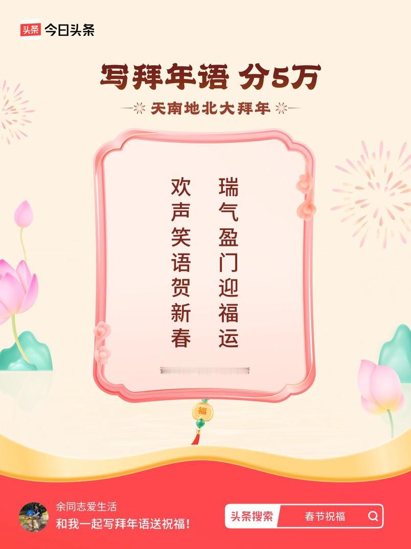 写拜年语送祝福新春拜年送祝福!我的祝福是:“欢声笑语贺新春,瑞气盈门迎福运”!快来一起写祝福吧戳这里,一起领红包>