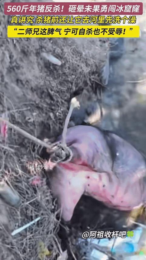 “万万没想到!”2月10日,山东烟台,一男子家杀年猪,不料,因猪太重,4个人按不住,男子就想着拿东西先把猪给敲晕在杀,不曾想猪没被敲晕还因此受惊逃跑了,由于男子家离水库比较近,猪不知道往哪里跑就一头扎进了水库的冰窟窿里。 这户农户家的年猪,是主人精心养了一整年的“宝贝”,全程喂的五谷杂粮,没掺一点饲料,出栏时称重足足有560斤,膘肥体壮,浑身透着一股子劲。 腊月杀年猪,既是当地的老习俗,也是农户家备年货的重头戏,主人早早盘算好,杀了这头猪,既能自家过年吃,也能分给亲友,热闹又实在。 为了顺利杀年猪,主人特意请了3个邻里来帮忙,加上自己一共4个人。 按村里的经验,杀这种几百斤的大肥猪,至少得五六个壮汉才行,但年关大家都忙,主人心存侥幸,觉得4个人凑活能应付,没再多找人,可就是这份侥幸,埋下了意外的伏笔。 几人费了九牛二虎之力,才把猪圈里的大肥猪赶出来,刚想把它按到杀猪凳上,这头猪就像是察觉到了危险,瞬间爆发出惊人的力气。 4个壮汉分工明确,两人拽耳朵,一人按后腿,主人则扑上去锁住猪脖子,可即便这样,依旧压不住它的挣扎,猪甩头蹬腿,好几次都差点把人带倒,几人累得满头大汗,折腾了十几分钟,愣是没制服这头“庞然大物”。 眼看硬按行不通,主人灵机一动,找来一根木棍,想着轻轻敲一下猪的额头,把它暂时敲晕,这样既能省点力气,也能减少猪的痛苦。 可他万万没想到,这一下不仅没敲晕猪,反而彻底激怒了它,也让这头猪彻底受惊,求生本能瞬间拉满。 受惊后的大肥猪发出一声嚎叫,猛地挣脱了4个人的束缚,撒开四条短腿就往院外疯跑,速度快得让人猝不及防。 几人愣了一秒才反应过来,赶紧追了出去,一边追一边喊,可这头猪像是铁了心要逃跑,一头扎进了村口的小路,谁也拦不住。 偏偏主人家离附近的水库只有几十米远,慌不择路的猪根本没分辨方向,一门心思往前冲,转眼就跑到了水库边。 冬日的水库表面结着一层薄冰,看着平整光滑,可560斤的重量压上去,瞬间就出了意外。 只听“咔嚓”一声脆响,冰层破裂,这头大肥猪连犹豫都没犹豫,一头扎进了冰冷的冰窟窿里,转眼就没了踪影,只留下水面上一个黑乎乎的洞口,还有一圈圈扩散的波纹。 几人追到岸边时,彻底傻了眼,寒冬腊月,冰面脆弱不堪,水深不明,没人敢贸然下水打捞,只能在岸边急得团团转,随后赶紧找来村里有经验的老人和专业打捞工具。 众人顶着刺骨的寒风,小心翼翼地在冰面作业,从清晨忙到中午,才终于把这头猪从冰窟窿里打捞上岸。 可此时,这头大肥猪已经没了生命体征,浑身僵硬,因为没有经过正常的屠宰放血,猪肉淤血严重,已经无法食用。 主人蹲在一旁,看着自己养了一年的猪,又心疼又好笑,一年的心血付诸东流,虽有遗憾,却也只能无奈接受这个意外。 这事很快就在村里传开了,村民们赶来围观,有人调侃这头猪是“二师兄的最后倔强”,宁可跳冰窟窿也不愿被宰,也有人替主人惋惜,好好的一头年猪,最后落得这样的下场。