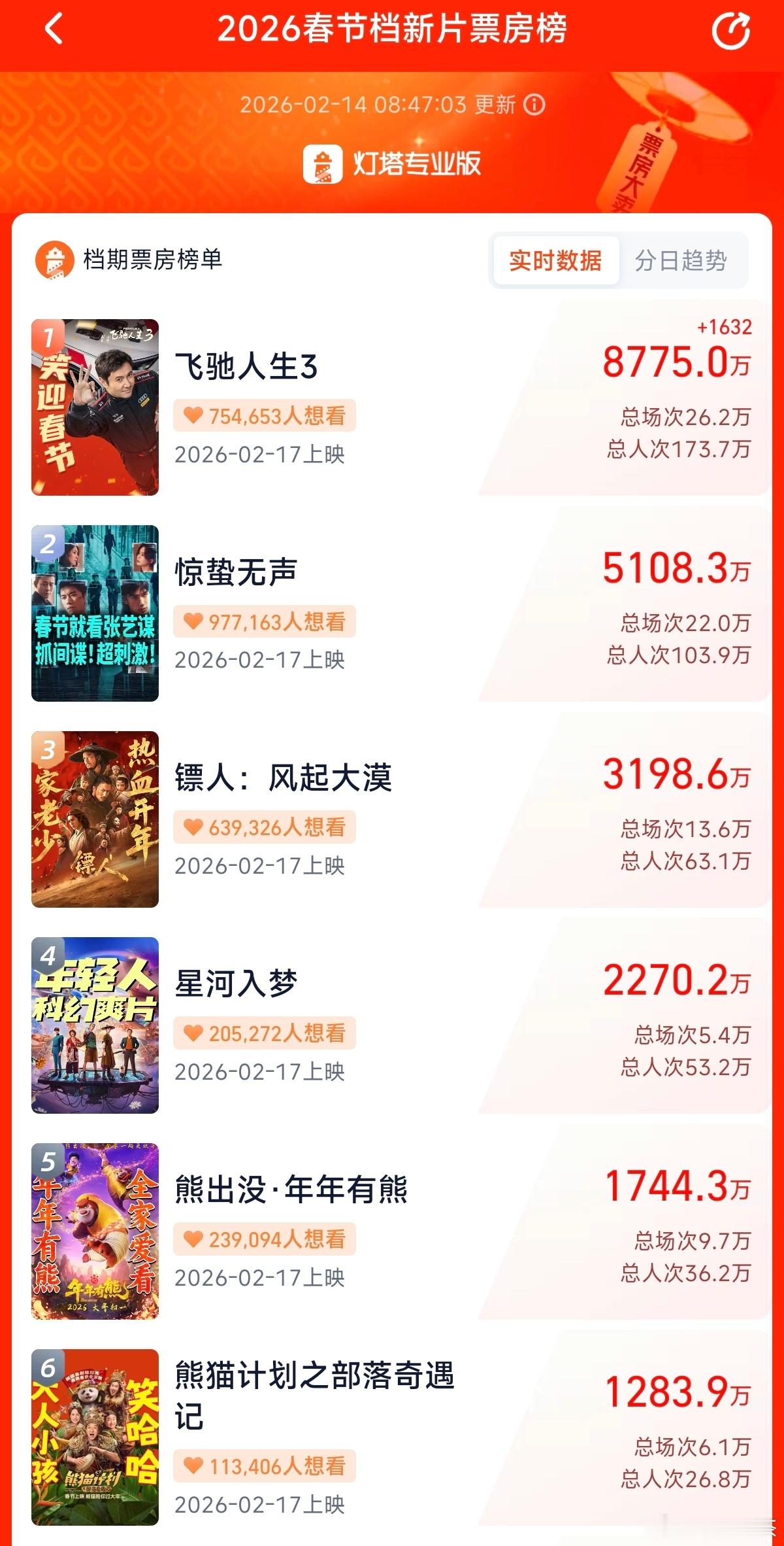 春节档电影预售情况 《飞驰人生3》:笑迎春节《惊蛰无声》:春节就看张艺谋,抓间谍