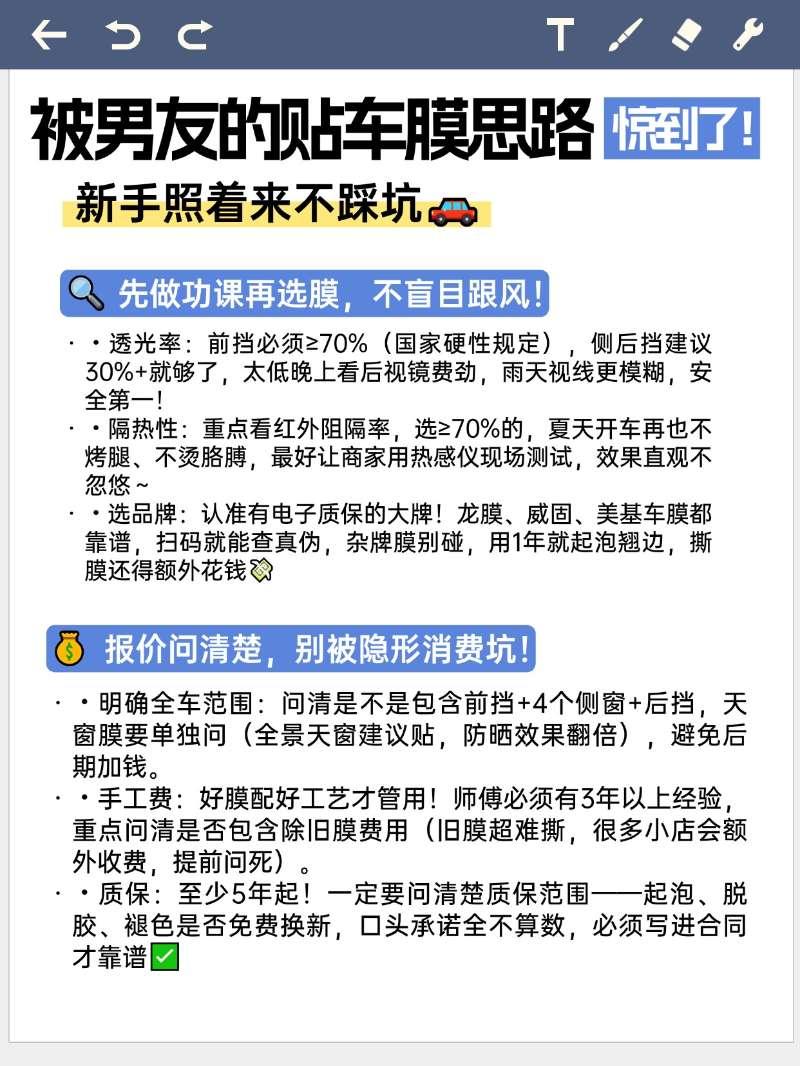 被男友的贴车膜思路惊到了!新手照着来不踩坑🚗谁懂啊家人们!本来以为贴车膜是玄学,结果被男友的贴膜思路狠狠拿捏🤏 全程不慌不忙,每一步都踩在点子上,新手直接抄作业,再也不用怕被商家坑!【来自懂车帝车友圈】
