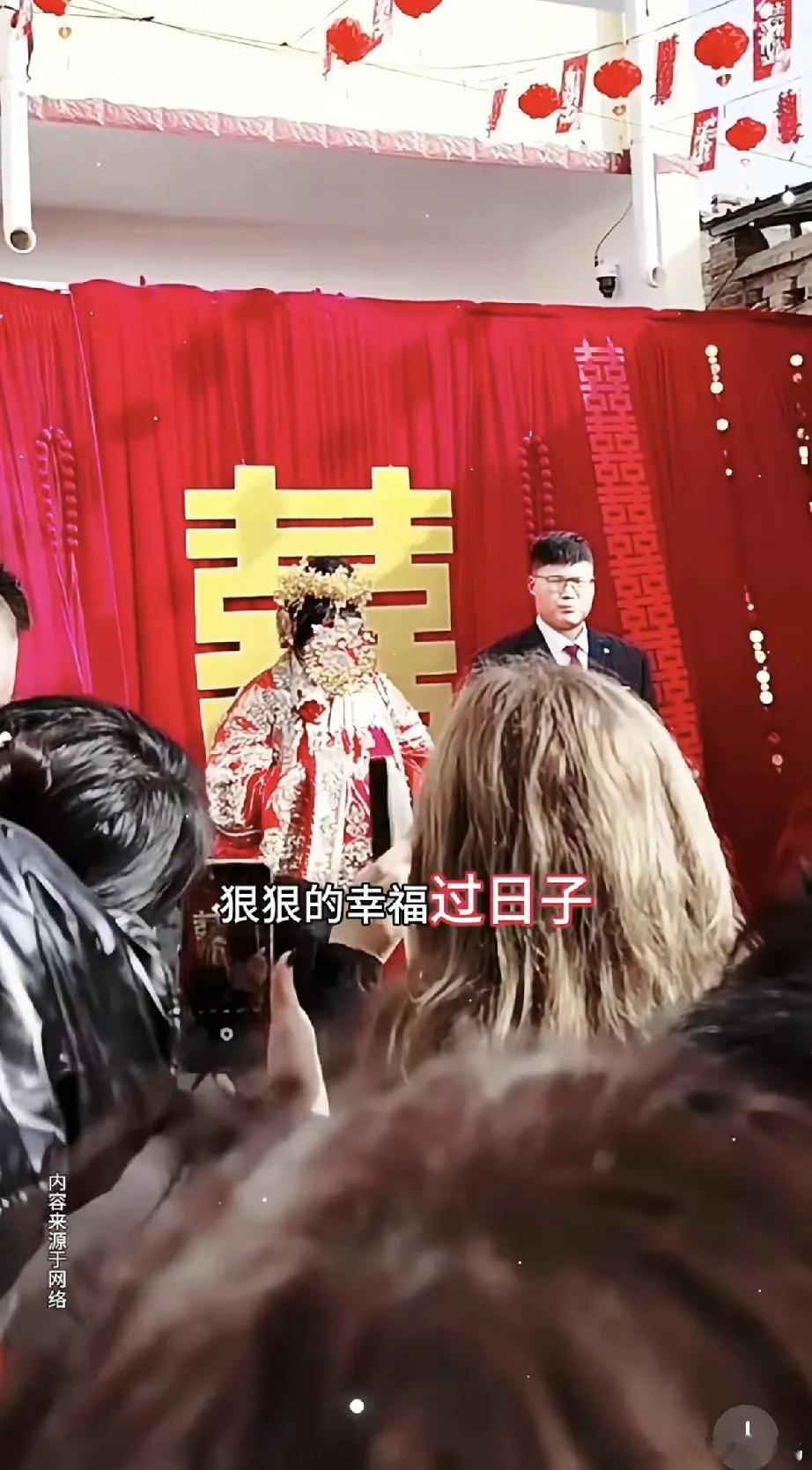 大衣哥女儿结婚,6辆30万的奥迪车车队,朱雪梅戴传统的凤冠霞帔,大衣嫂化妆,大衣哥穿皮衣,新郎是普通农民!