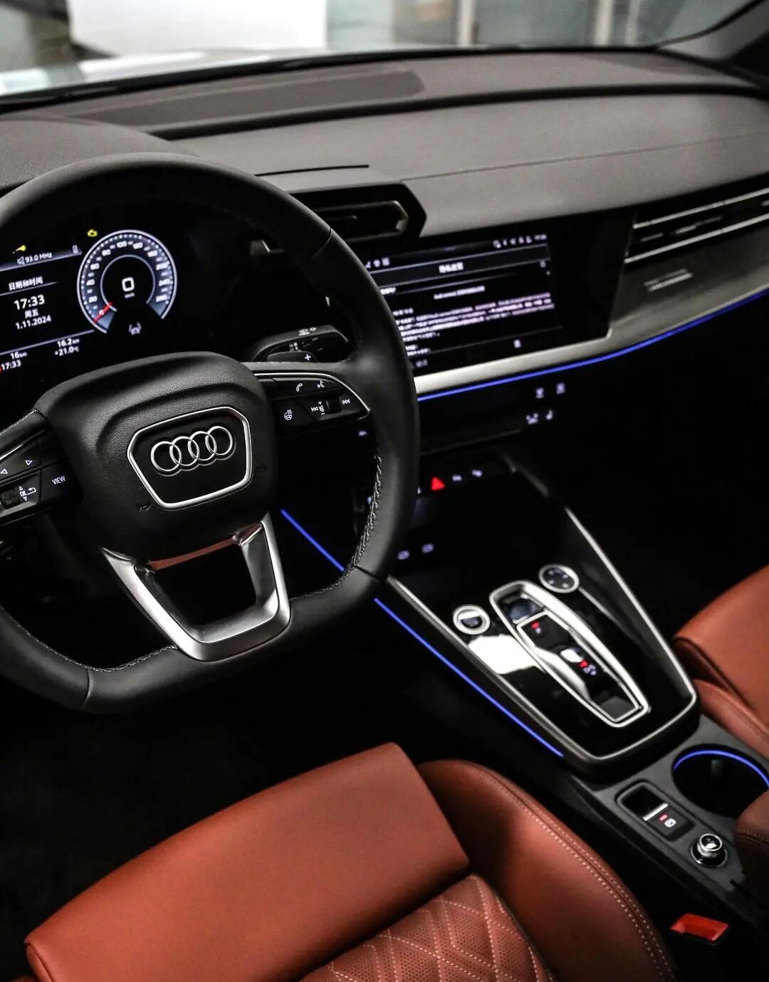 车身尺寸来看,奥迪A3是两厢的,车长四米多点,轴距两米多,家用基本上够了,虽然比速腾短,也够用了。动力系统方面,A3是1.5T的,配七速双离合,马力有一百六,扭矩二百五,动力很够用,跟速腾一样,比星瑞的2.0T,稍微弱一点,这个是事实。配置水平呢,奥迪A3有十七寸轮毂,倒车影像也有,定速巡航也有,主动刹车挺好,八个气囊很安全,碰撞预警都有,双十寸屏也大,主驾电调座椅,自动空调也有了。它缺了L2辅助,缺了三六零影像,缺了座椅加热,缺了导航那些,但日常来说,那些配置,不是特别重要。