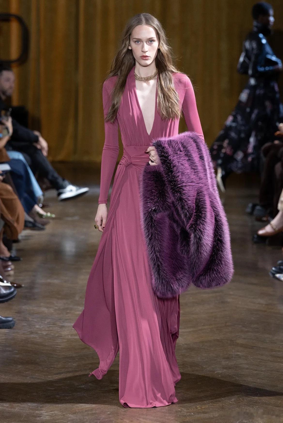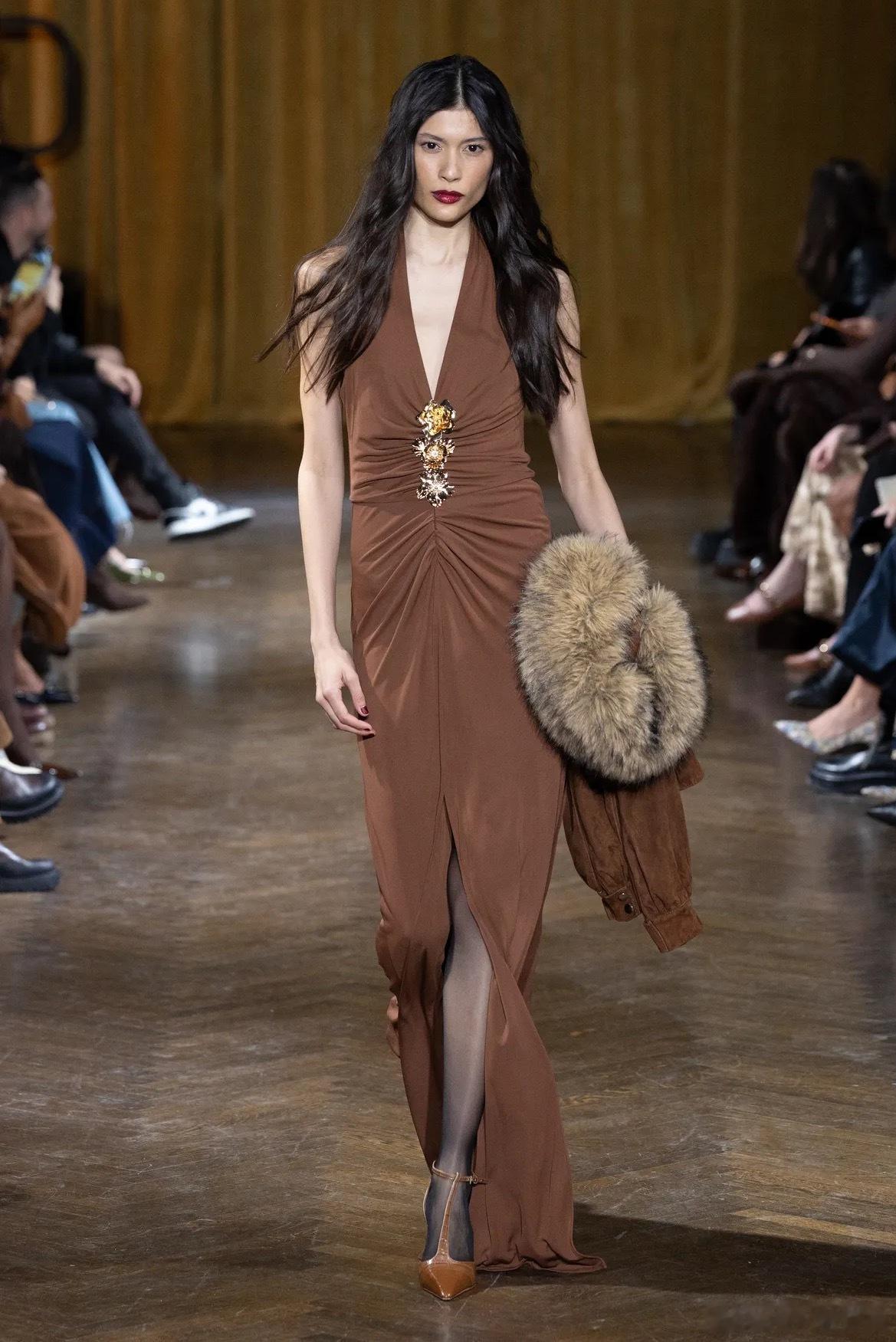 SPONSORED CINQ À SEPT 2026秋冬女装系列亮相纽约时装周——线条收放自如,面料轻盈贴身,整体风格被形容为‘度假风圣罗兰’,其设计语言明显呼应Anthony Vaccarello近年美学脉络。时装周纽约女装周