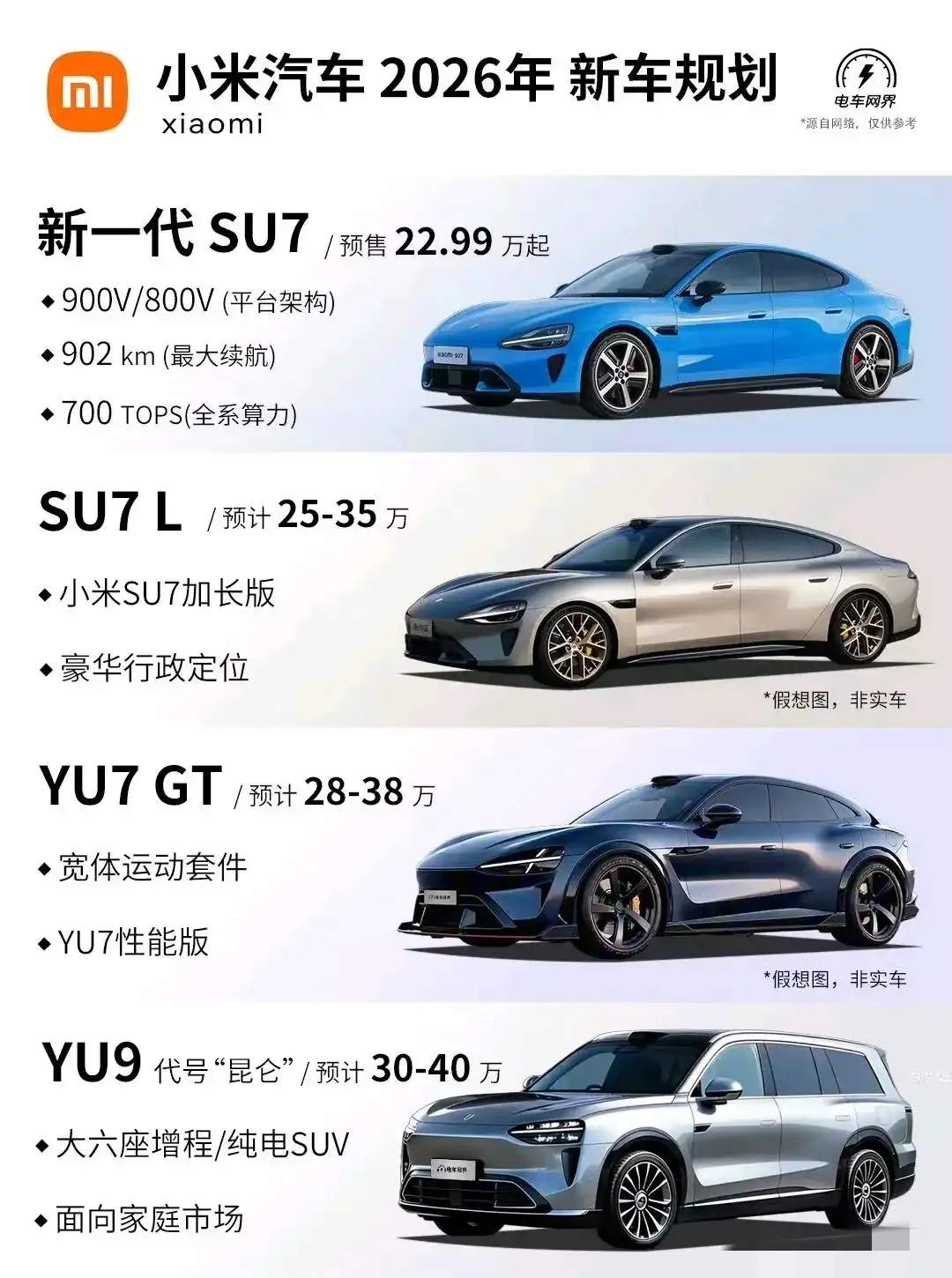 五.未来的展望 - 2026年目标55万辆,年底累计有望破百万。 - 新SU7+YU7双车发力,SUV+轿车全覆盖。 - 武汉工厂落地,产能再上台阶。 - 智驾、800V快充、生态持续升级。 六.总结 60万是小米汽车从“现象级爆款”到“主流玩家”的成人礼,速度与盈利双轮驱动,正在重塑中国新能源格局,但产品、质量、供应链的长期考验才刚刚开始。