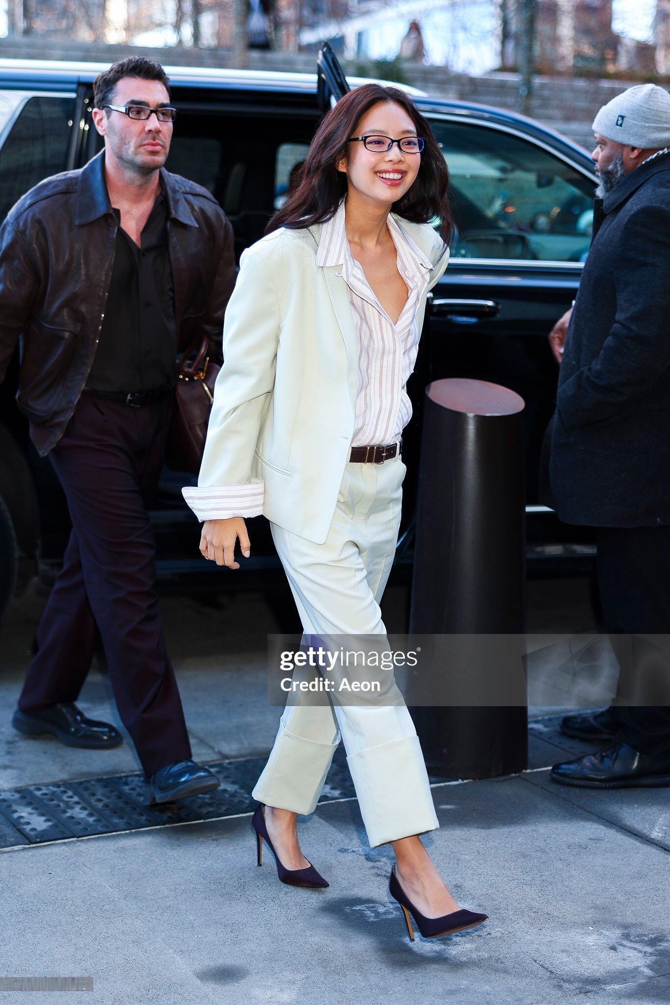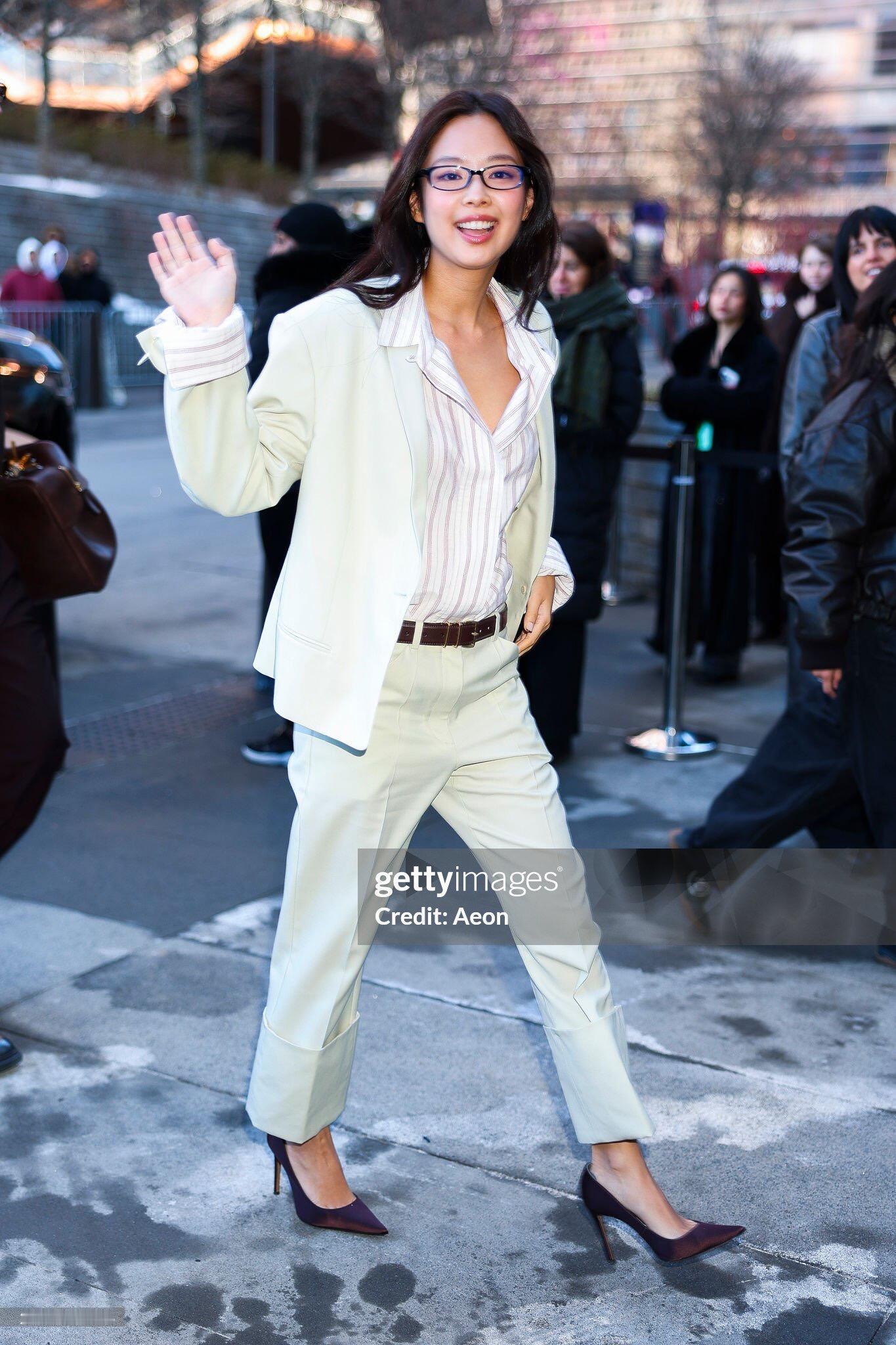 Jennie纽约时装周生图Jennie黑框眼镜 Jennie惊喜亮相纽约时装周ck大秀,黑框眼镜+白西装 高质感造型美爆!!!Jennie亮相纽约时装周