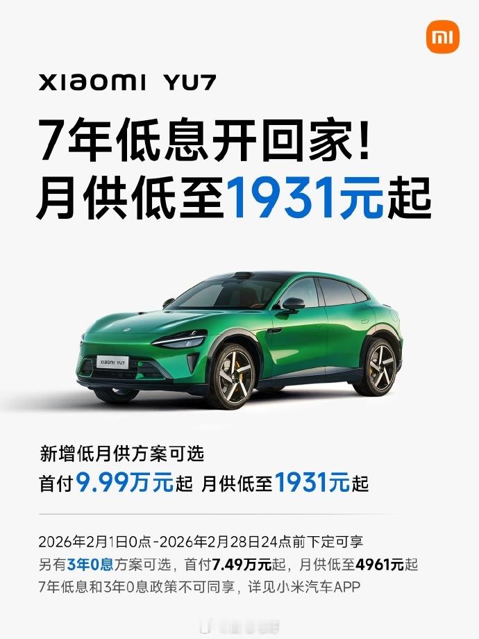 7年低息和3年0息的金融政策活动还在,只要在2月28日前下单即可