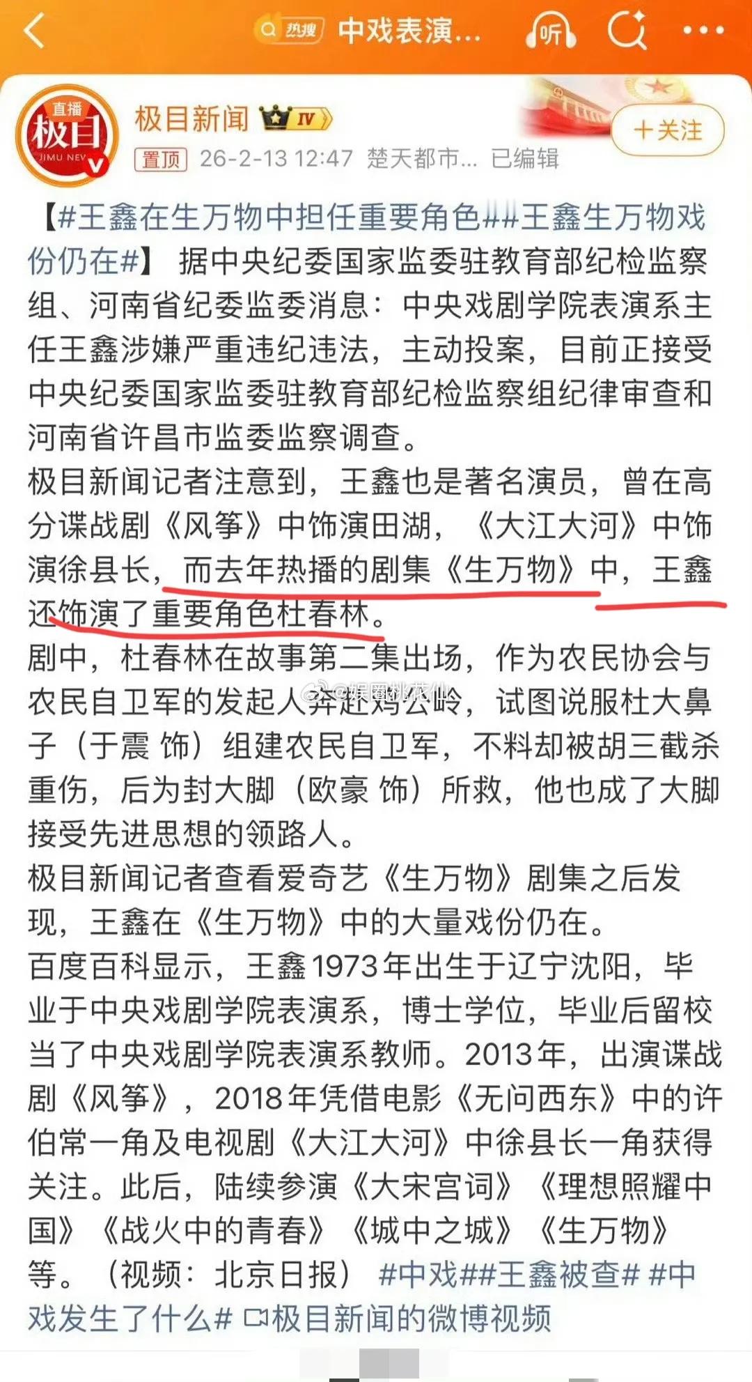 其实现在以后《生万物》要嘛删了王鑫他的戏份?要嘛放弃评奖?