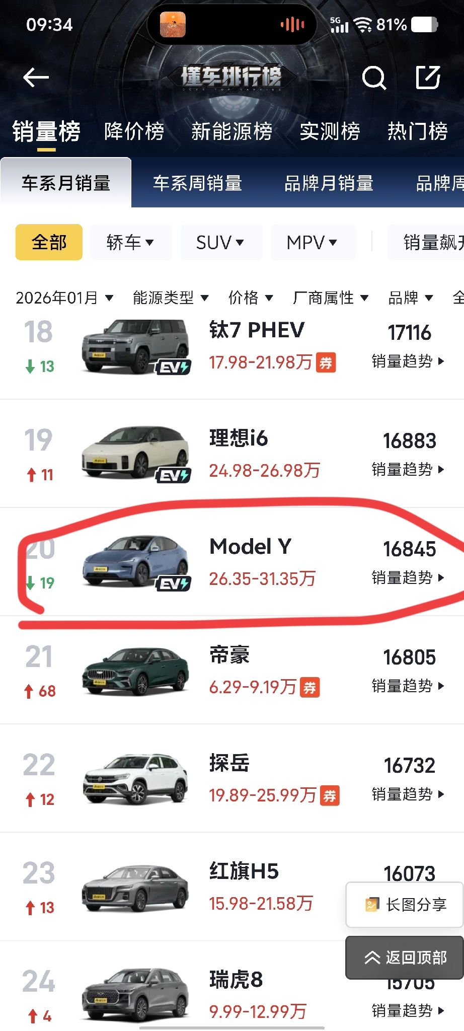 特斯拉一月份销量太低啦!除了一份月特斯拉产能大多数供给出口,但也没这么拉胯过!个人认为还是购置税的原因,现在买比去年多一万多购置税,所以十二月份特斯拉销量报表,但现在谁会多花一万多而不是去年买呢?除非等特斯拉降价到和去年价格差不多,兄弟们,你们认为呢?