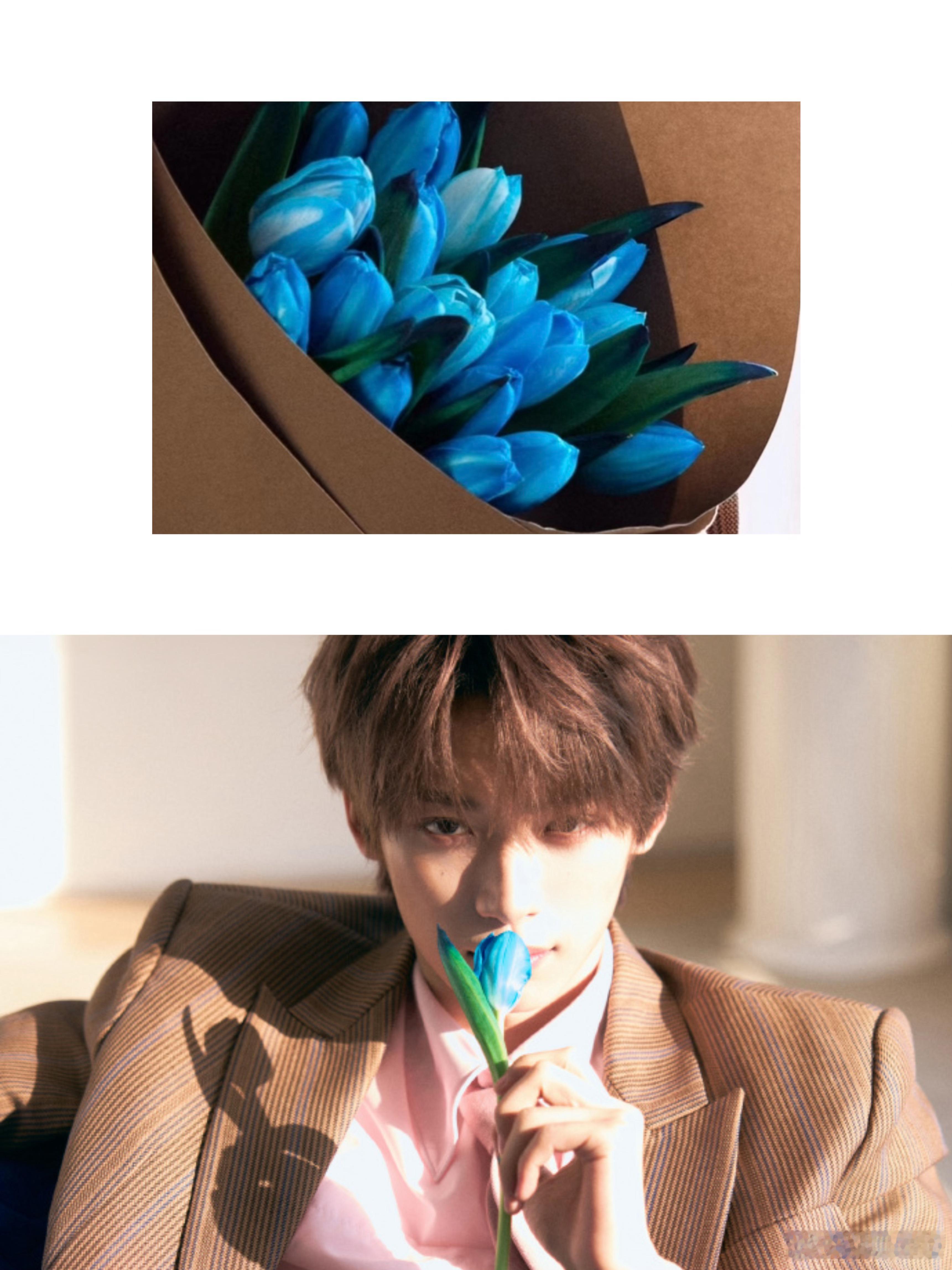 梓渝情人节写真💙 今天的浪漫,是梓渝手里那束蓝色郁金香。也是“接下来的日子,也要和大家常见面”的温柔承诺。