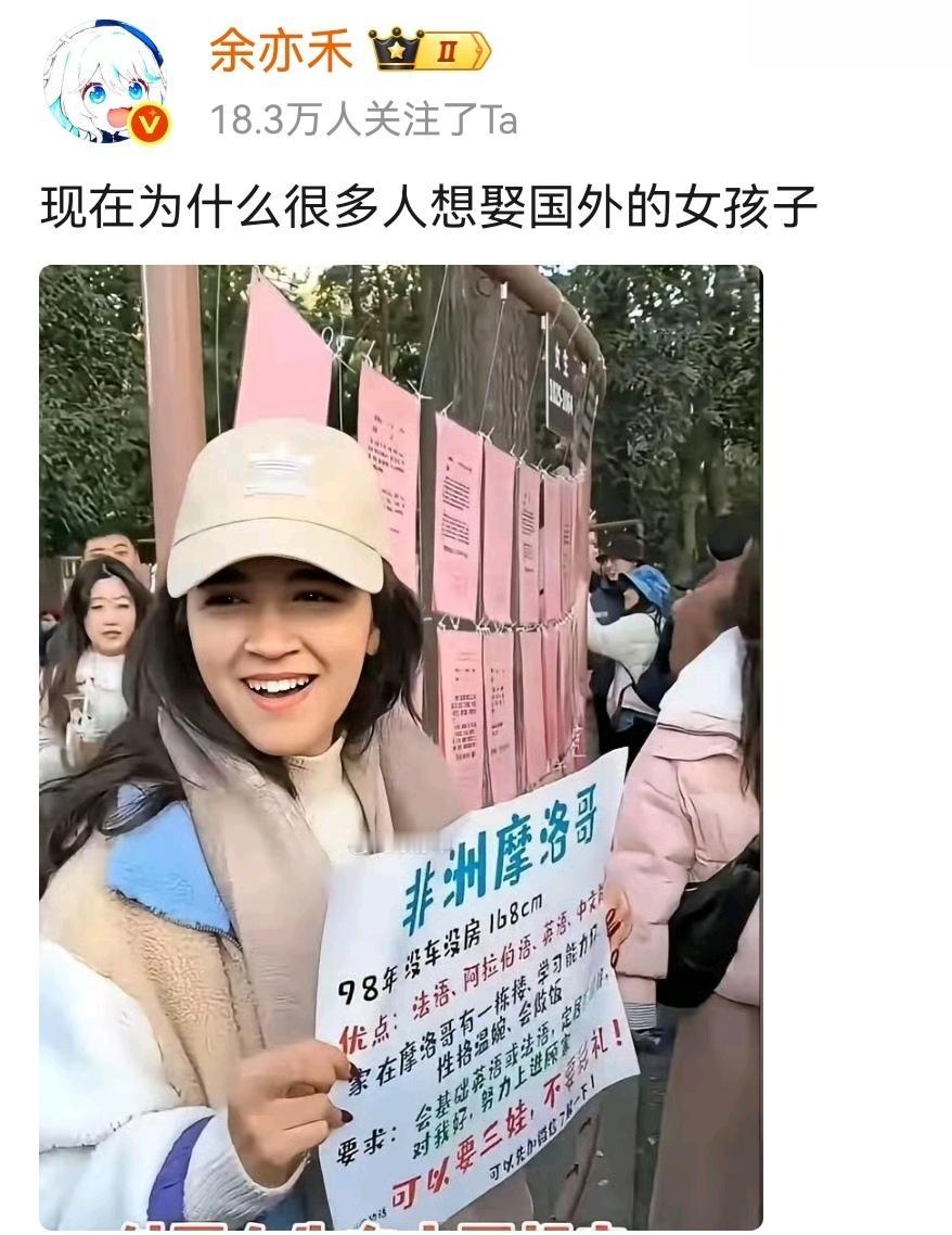跨国婚姻,渐成潮流。 (如图所示)国内的跨国婚姻一直都很流行,但渐渐地从国女外嫁,更多地是国男娶外国媳妇,尤其是内陆地区,东南亚媳妇、东欧媳妇和非洲媳妇,国内应出台必须的法律法规保障国人的利益,防止一些骗婚骗嫁的不法行为。