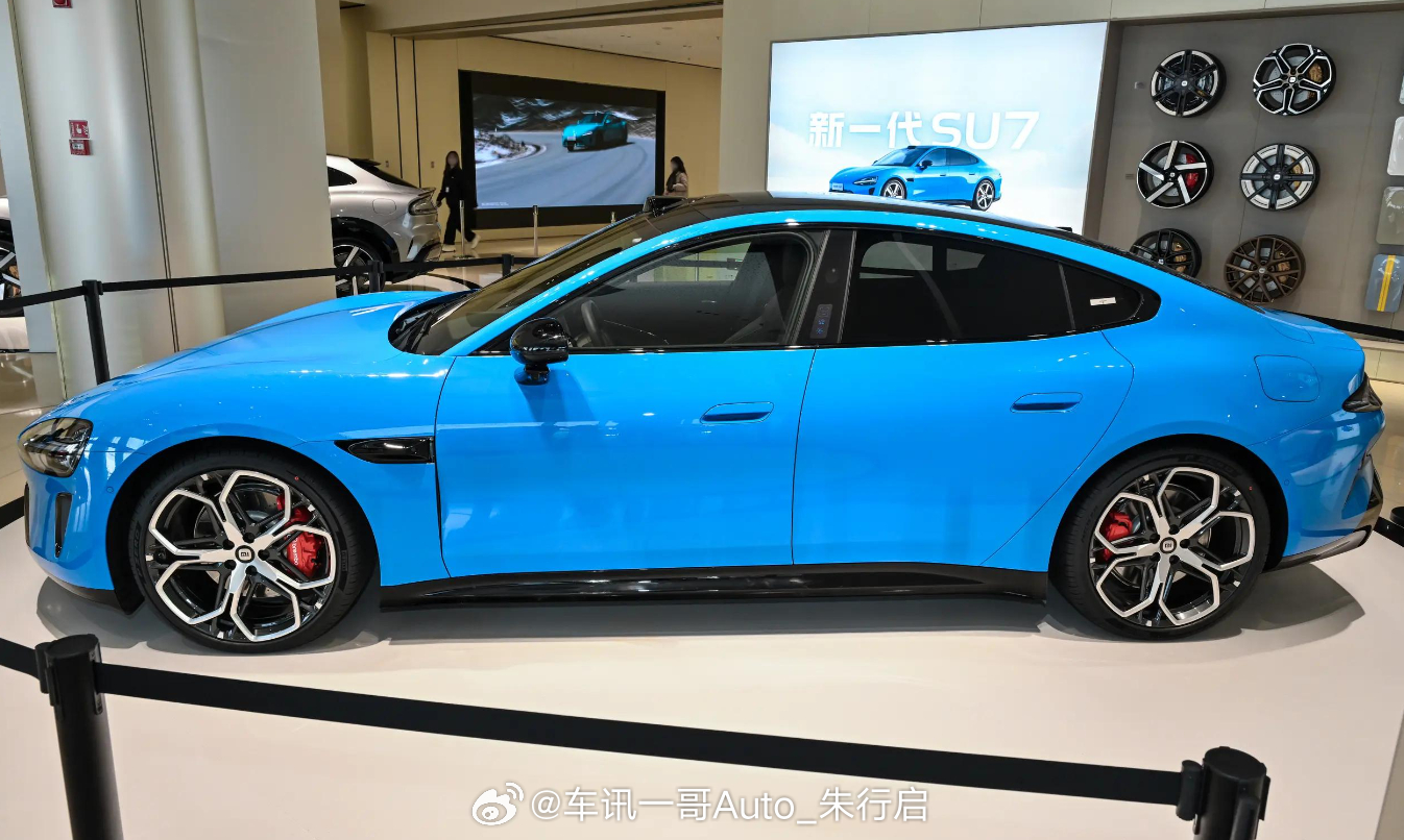 从外观来看,新一代小米SU7延续2024款车型整体风格,提供全新造型的20英寸铝合金轮辋,并且全系标配前窄后宽轮胎。