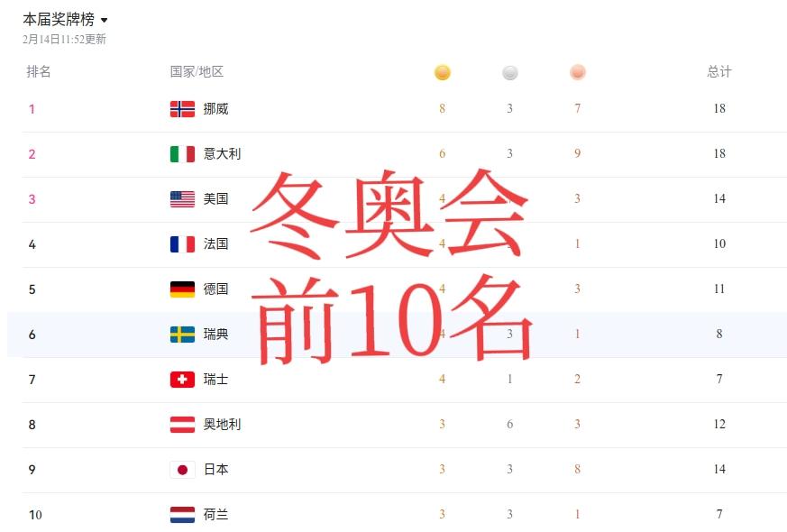 冬奥会第8天,中国还是大鸭蛋!排名榜单,拉了半天才看到,第18名、2银2铜,首金什么时候诞生?只能靠谷爱凌了!冰雪运动真是烧钱的贵族运动,前20名,挪威、意大利、美国、德国、法国等等,几乎清一色发达国家,绝大部分欧美国家!而且多为技巧性技术型项目,靠重复训练也不行,必须有天赋、有知名教练,离不开父母花钱砸!