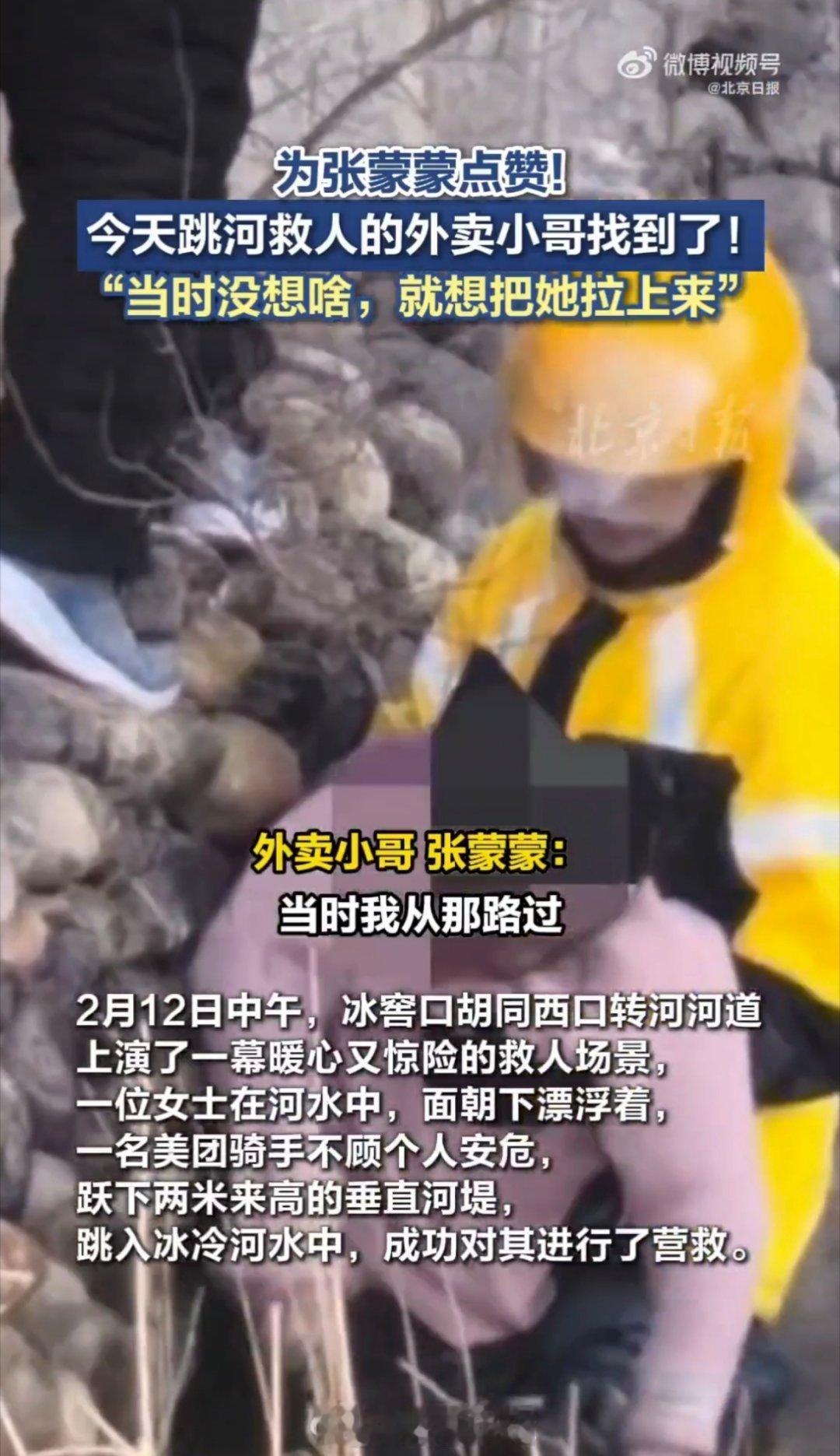 跳冰河救人的外卖员找到了帮小哥冰河救人的还有位政协委员希望他们的善举能被传承下去,帮助更多的人。北京外卖员张蒙蒙送单时见人落水,毫不犹豫跃入冰河托举生命;政协委员李武路过,跪伏窄岸抓住救援的手。他们素未谋面却在危急时刻并肩协作。这未经设计的善良尽显人心本色。平台奖励、部门慰问是对善举的肯定,而政协委员与外卖小哥共战一线,更令人动容。英雄不问出处,善举温暖社会。愿奋不顾身皆被善待,平凡善意激起更多向善波澜。