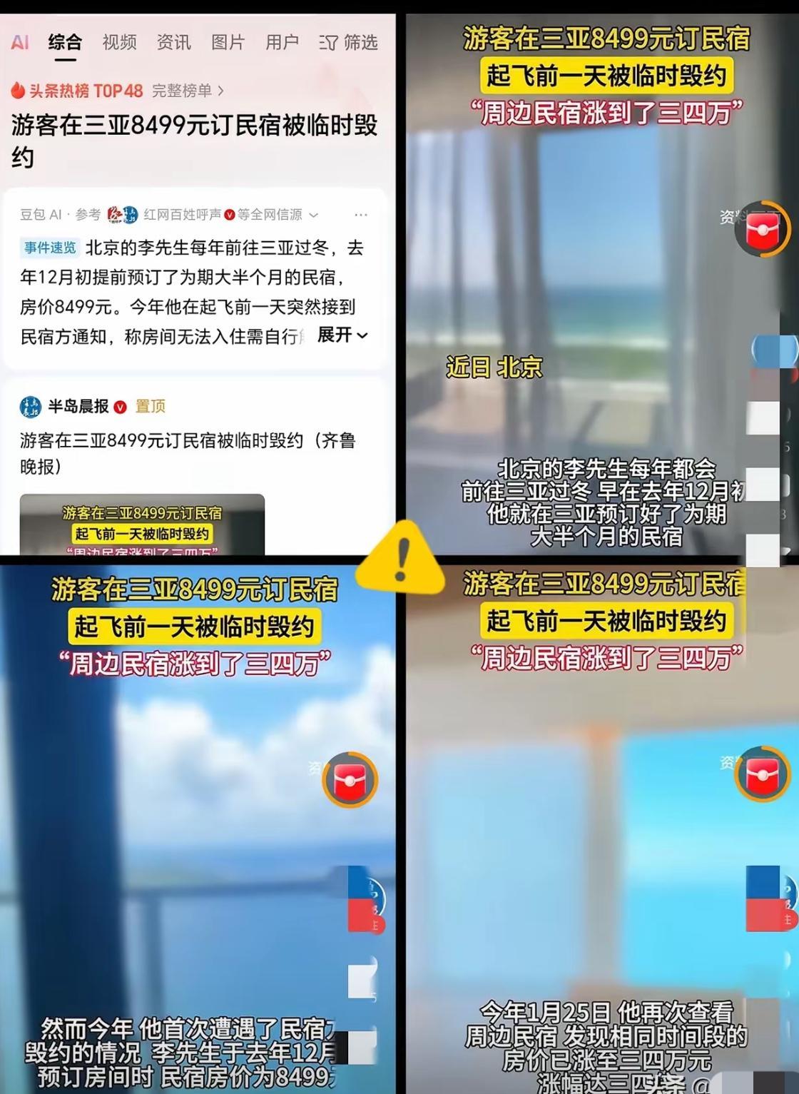 简直是捡了芝麻丢了西瓜! 北京的李先生每年前往三亚过冬,去年12月6日提前预订了为期大半个月的民宿,房价8499元。今年他在起飞前一天突然接到民宿方通知,称房间无法入住需自行解决,此时周边相同时间段的民宿价格已涨至三四万元。 明明可以赚8499元,却偏偏贪心不足蛇吞象,到头来可能不仅钱没赚到,自家口碑也没了,还要面临平台的处罚,线上下单这一通道估计也要面临关闭,好好的生意被自己干黄!还真是一手好牌打的稀烂! 有网友评论:有关部门的出手是对海南文旅的救治,不能一颗老鼠坏了熠熠海南、三亚的一池清亮海波。赞 处罚太轻,严重怀疑当地监管护犊子行为。三亚的口碑本来已不太好,这样下去很难再期待有好的改进 对此,你怎么看?
