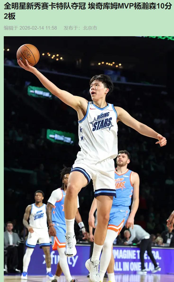 谁说赢家才能被记住? 看完这届新秀赛,我整晚睡不着。脑子里不是捧起MVP奖杯的埃奇库姆,而是那个只打了10分钟就被换下的中国大个子——杨瀚森。 这赛制确实像开盲盒。25分就散伙,40分决赛,运气比实力还玄。埃奇库姆那两罚绝杀,我直接从沙发上弹起来:这也行?但骂完突然清醒——要不是这尿性规则,杨瀚森哪有机会在有限时间里狠狠刷存在感? 他打克林根那个转身,我回放看了五遍。防守是松,全明星赛谁跟你玩命?但松是所有人的松,敢做动作的没几个。杨瀚森敢投三分,敢打2+1,手活细得让人意外。你说这是降维打击?夸张了。但那种"我管你是谁"的劲儿,太稀缺了。 埃奇库姆MVP实至名归?半决赛17分加绝杀,心脏确实大。但细看数据,卡特队两场就赢2分。谢泼德连飙三分,卡斯尔关键补篮,结果被一哨子终结。这种赢法像抢红包,手气最佳而已。 球迷骂了几年新秀赛走过场,今年好歹真刀真枪。短归短,至少年轻人拼了。杨瀚森那10分不是刷的,是实打实对着未来NBA对手打进的。那种"我来了"的气势,比奖杯实在多了。 全明星玩的就是噱头。但能让人记住的,永远是那些敢在镜头前亮出真本事的人——不管他是冠军,还是半场就被淘汰的过客。全明星新秀赛卡特队夺冠 埃奇库姆MVP杨瀚森10分2板