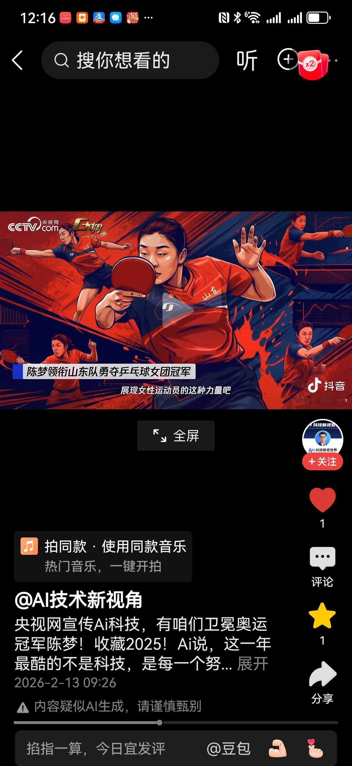 央视用一个动作定义AI,主角不是科学家,而是陈梦。 那个全运会上的标志性击球,被拆解成数据流,成了国家宣传片里“精准”与“预判”的代名词。 这就是对所有争议的无声回应。 当你的强大已经超越人类竞技范畴,进入“算法级”稳定时,巴黎的单打席位,就不是一道选择题。 她要征服的不是下一个对手,而是卫冕冠军这个最沉重的身份。