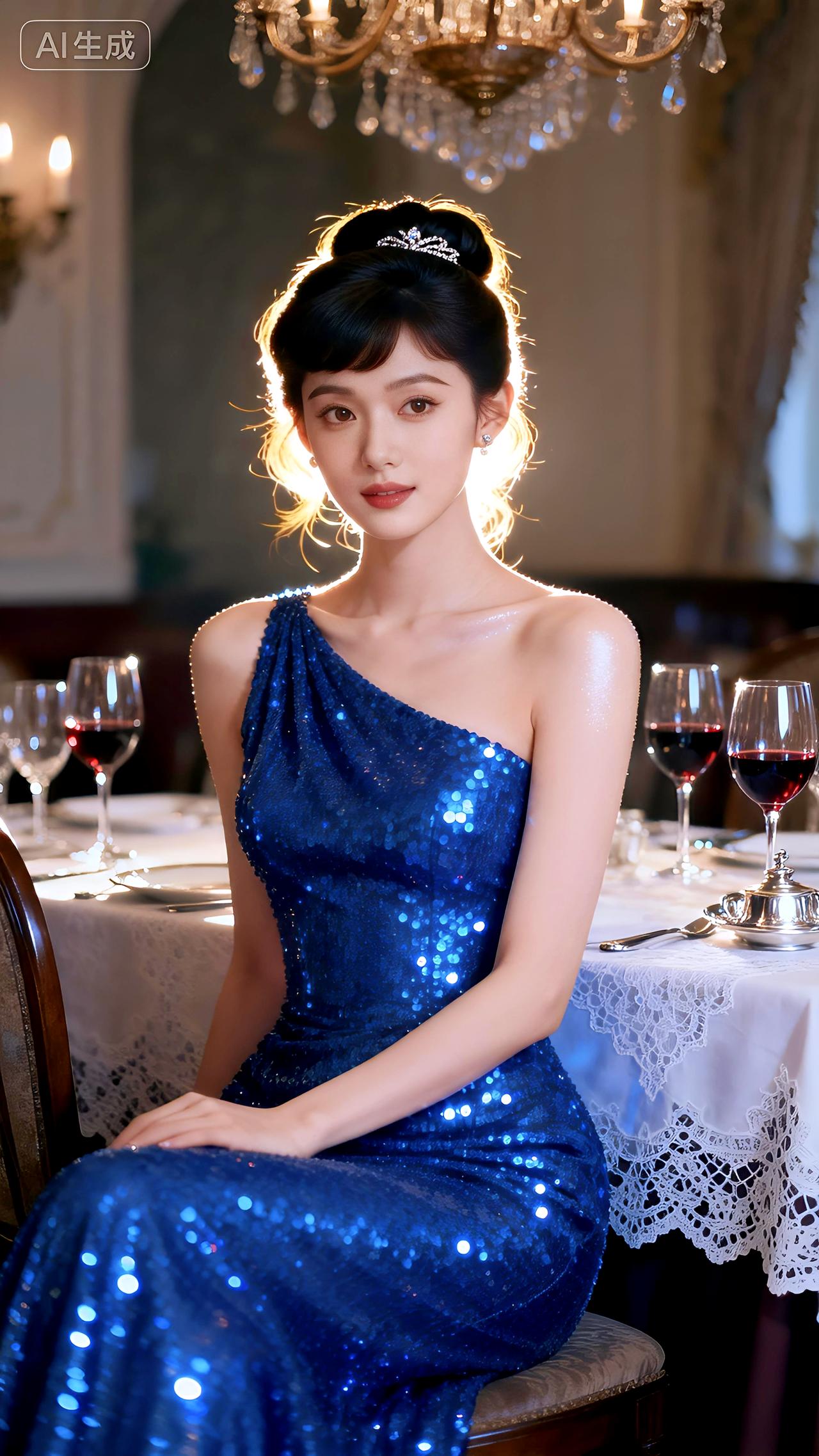 美图壁纸共享烛光宝蓝,红酒微醺,定格法式浪漫。豆包壁纸写真
