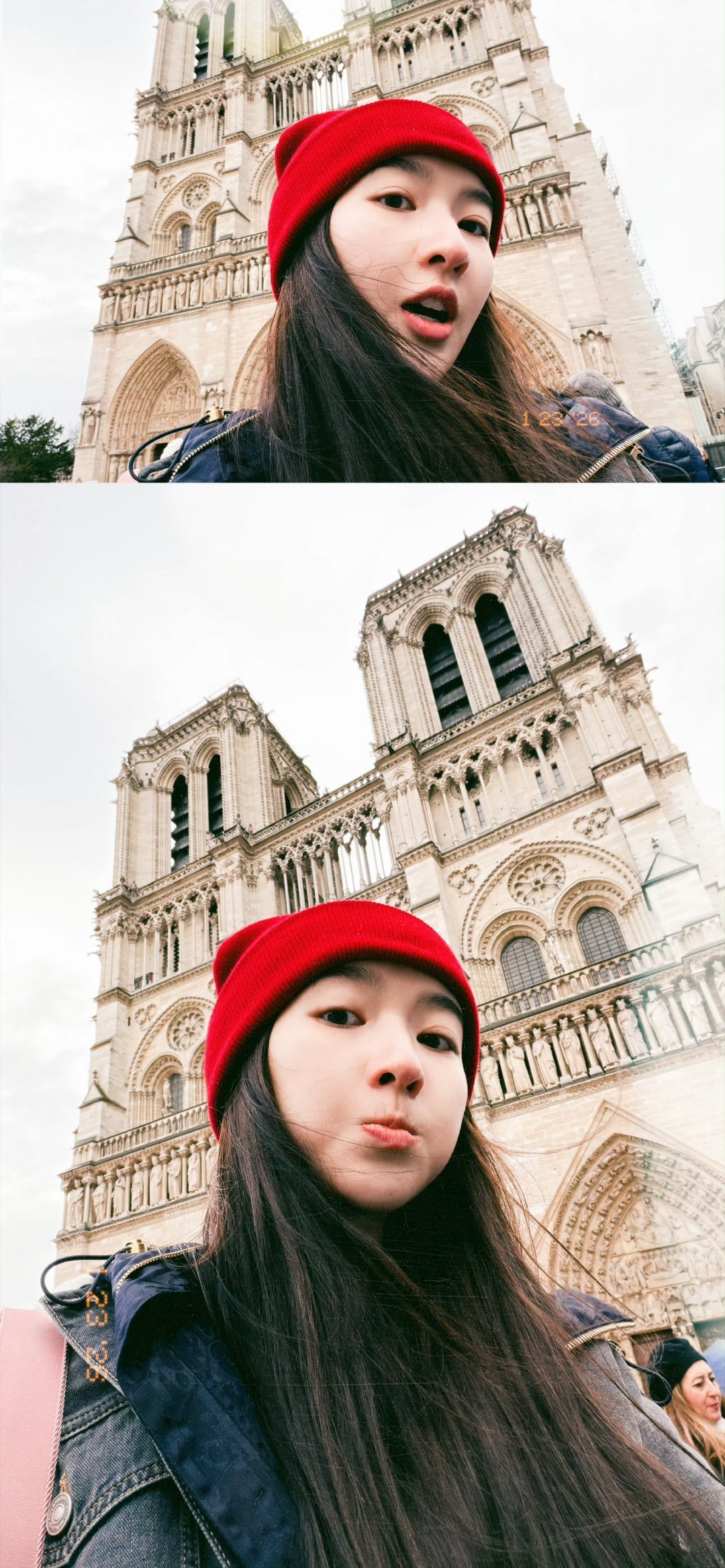 张天爱跟素人合影,胯真的好宽,大宅院似的
