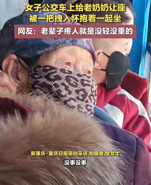 甘肃,一女子早高峰坐公交车,车里是人挤人,女子当时是有个位子的。本来还低头看手机呢,突然一抬头,身旁站立着一个80多岁的老奶奶,女子看到老人家,立刻就站起来让座。给老人家让好座之后,女子则站在老奶奶的旁边继续玩手机。这个时候,老人家心疼女子,一把拉过女子,让她坐在自己的腿上,就这样,二人相拥着一起坐到了公交站点。 新重庆-重庆日报2月13日报道了这则新闻。 据报道称,很多人都表示,没想到,老人家可能一辈子都很疼爱自己的孙子辈们,把女子当作自己的孙女了,虽然年纪大了,还是很关心人,重然不知道女孩子坐在奶奶腿上究竟重不重。 事发于一个早高峰的公交车上,说起来,当时车上真的是人挤人,非常的拥挤。 樊女士当天运气很好,上车的时候,竟然还能有个位子。坐下来之后,往下一站开的时候,就簇拥了一群人上车,几乎就是挤得脚不着地。 而樊女士则坐在位置上,打开手机,心想:可以悠闲的刷一会手机了。 正当樊女士沉迷于刷手机的时候,突然一抬头,看到身旁站立着一个老奶奶。 樊女士想到老人家这么一大把年纪了,还来赶公交车,看起来,也已经八九十岁了。 当时樊女士立刻就弹起来,把座位让给了老奶奶,还扶着她坐稳了。 老奶奶也很开心,对着樊女士再三表示了感谢,还大声的说:“姑娘啊,你可真善良,谢谢你啊!” 听到老奶奶的夸奖,樊女士内心也很开心,毕竟是做了个好人呐! 本来樊女士还准备继续拿出手机玩一玩的,突然,身旁的老奶奶,接下来的举动,自让樊女士有些招架不住。 原来,老奶奶一把就把樊女士给拉了过来,直接就让樊女士坐在了自己的腿上。 就这样,一老一小、晃晃悠悠的,坐在了公交车的凳子上。 樊女士感到有些无所适从,但是老奶奶坚持将自己给抱住,奶奶表示:“我的身子骨硬朗着呢,你坐我腿上,这样你也不用吃力的站着。” 就这样,樊女士就被奶奶给抱在了怀里。 而樊女士只能乖乖听奶奶的话,但是还有一个尴尬的问题。 就是座位的正前方,有一个相反的位置,就是说,樊女士当时就跟的前面的人,面对面的坐了一路。 如果想要继续拒绝老奶奶,老人家又不答应,说自己不怕重,而且老人家表示,樊女士一点也不重,轻的很。 所以,无奈,樊女士只能接受老人家的“爱意”,就这样坐了一路。 很多网友表示:老人家的关爱就是这样,把你当作亲孙女呢! 还有网友表示:老一辈的疼人,就是没轻没重的,即便自己感到吃力,他们也愿意这样做。 本案释法: 1.女孩在公交车上主动给老人家让座,如何评价她的这个行为? 根据《民典法》规定,在公共交通工具上主动让座,属于一种基本的礼仪,尤其是给老年人、孕妇、残障人士让座,是一种文明的倡导,展现了其公德心。 樊女士在公交车上,给一位老人家让座,这个行为完全符合了公共道德的基本要求,并且还传递了正能量。 2.老人家可以强求让年轻人让座吗,不让座是否违法呢? 拒绝让座,本身并不构成违法行为。 根据《民法典》以及《治安管理处罚法》规定,并没有设置不让座即违法的条款,让座行为主要基于公德和文明倡导,没有明确规定年轻人必须要给老人年让座,不存在法律强制。 在公共交通工具上,会设置给老弱病残让座,这是一种优先权利的体现,但是即便年轻人不给老年人让座,也不存在非法的情况,不需要强制腾让。 但是却有部分的老年人,他们很享受被优待,有的时候会强制他人让座,如果对方不给,他们会以言语辱骂、肢体推搡,采取各类方式强迫他人让座。如果做出这样的举动,则超出了道德范畴、涉嫌违法。 这样的行为,就会被贴上标签——倚老卖老、暴力索座,不仅失去道德,而且还犯法了。 主动让座,可以体现出好的美德,也是值得鼓励的善意行为。但是如果人家不给让,也不要去强制。 对此,大家都怎么看呢?另外,对于本案的老奶奶还有樊女士的互动,大家都作何评价呢?