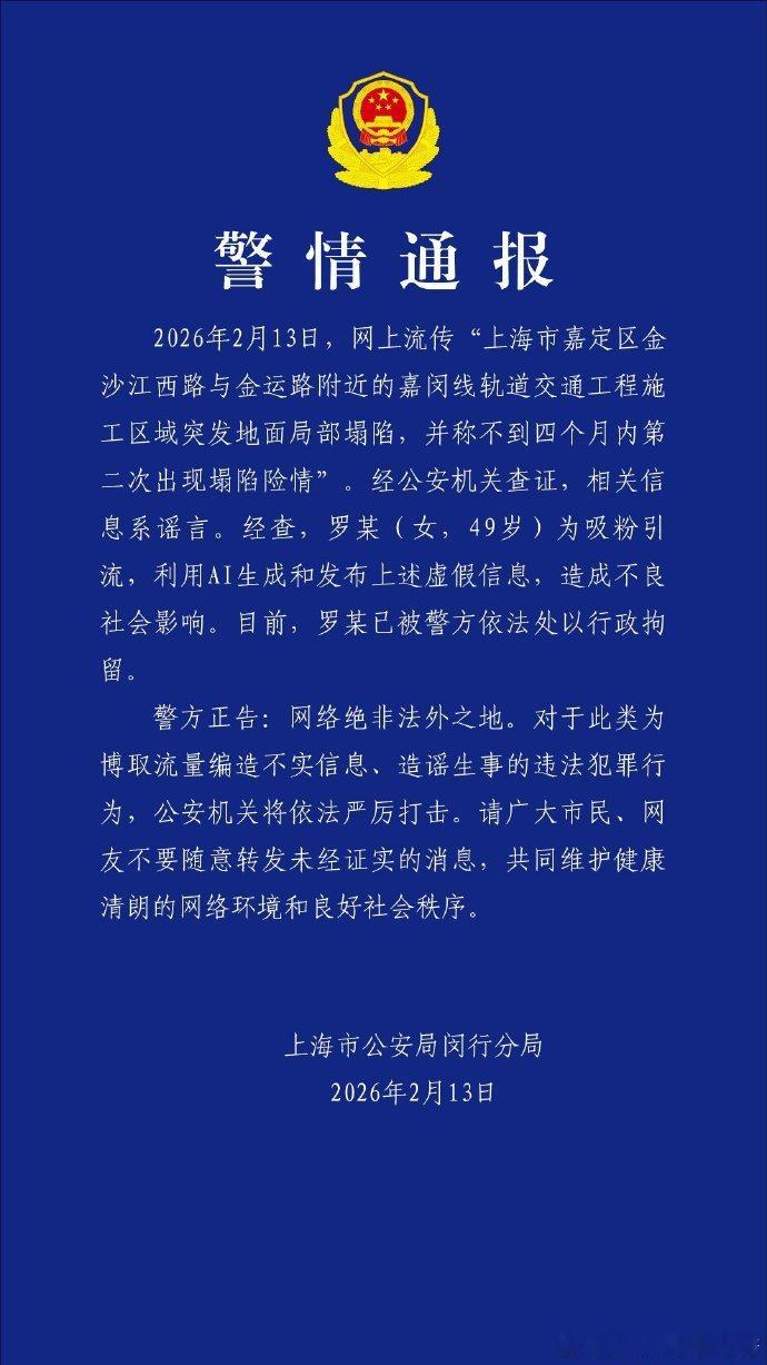 利用AI工具生成虚假信息,造谣上海某地二次出现塌陷险情。
