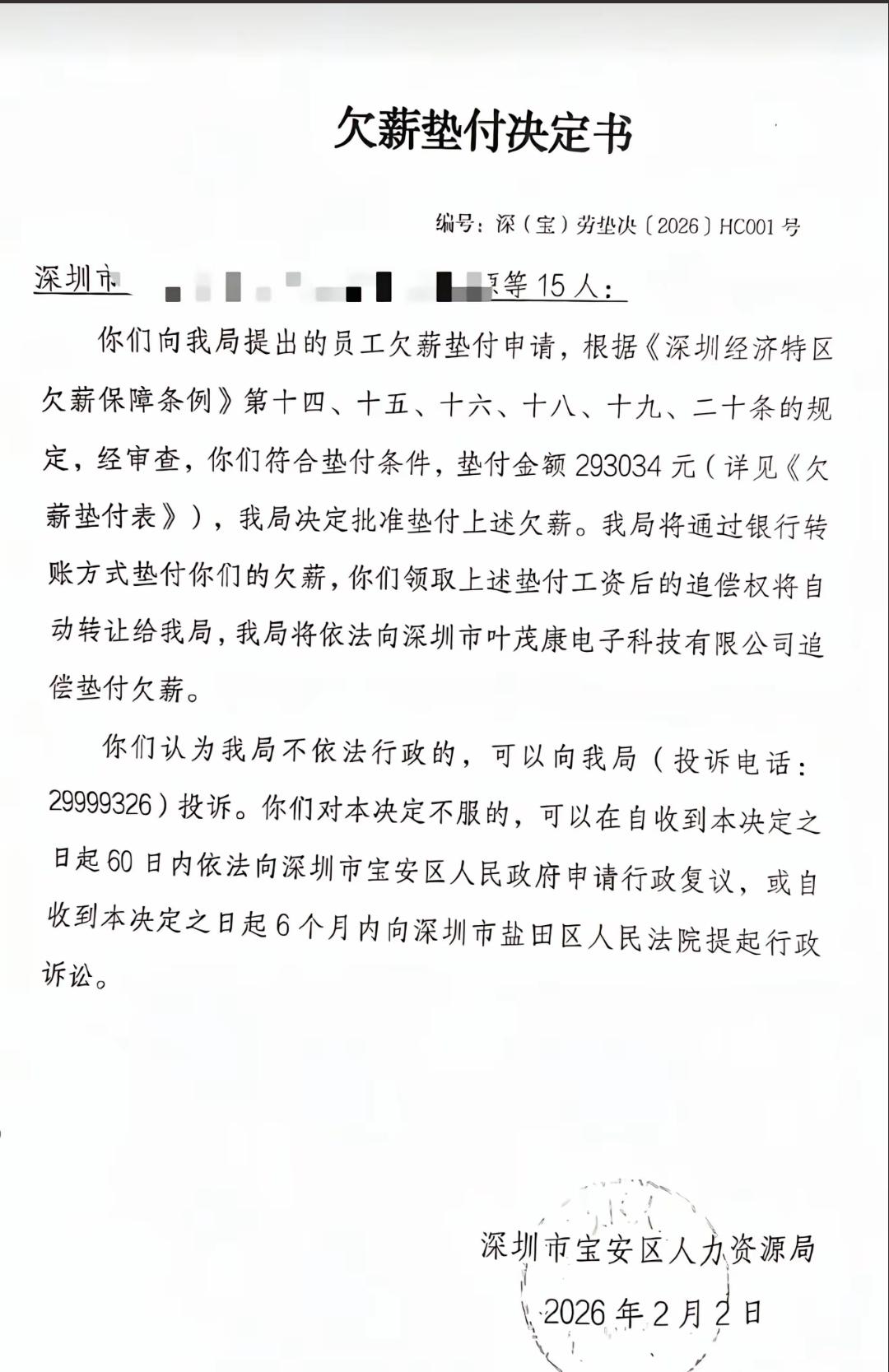 深圳市再次走在了全国的前列!为工人工资进行垫付! 这就是为相关工人进行工资垫付的通知书,相关公司欠工人的工资由深圳市宝安区人力资源局进行垫付,该所欠款项将由当地部门进行追偿。 很多人表示愿意让深圳代管自己这个区域,这样的话就不用担心干活拿不到工资了。各位是怎么看的?欢迎评论区留言。