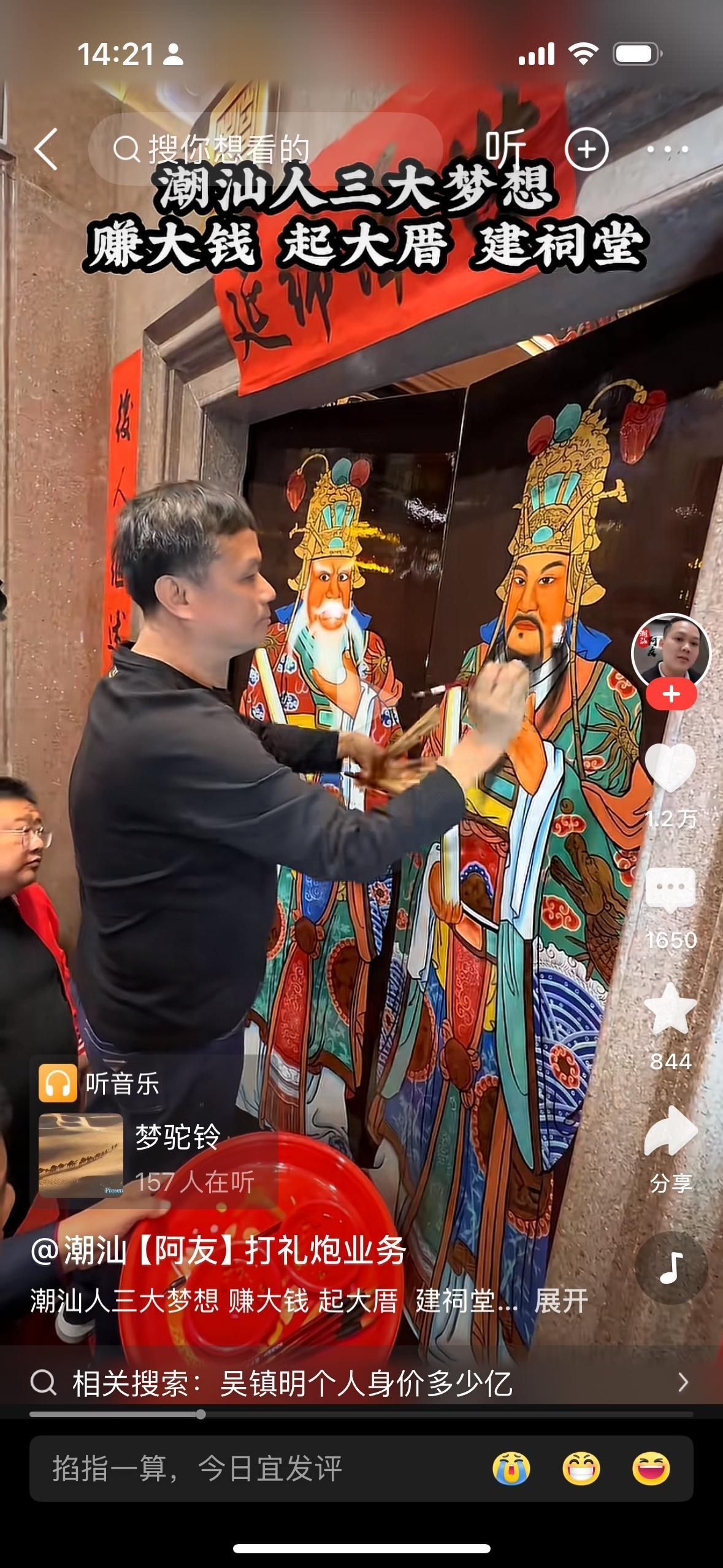 世界上有很多有钱人,潮汕人吴镇明火出圈了,并不是说他是有钱火出了圈,而是他做的事情火出圈了。1976年他只身到香港去打工,从搬运工做起,做到了亿万富豪,他发财的第一件事情是回家乡修路,建学校,修医院,特别是修祠堂,他说要让列主列宗有一个好好的生活的地方,这样才能保证有子子孙孙兴旺发达。我觉得潮汕文化保留了中国传统文化最精髓的部分就是宗族精神。中国人讲的是落叶归根,你漂泊到世界什么地方都好,最后都要落叶归根回到你的出生的地方。年轻的时候出去打工赚钱然后回报自己的家乡。但是他虽然很有钱但他也很有原则,他给每个人都发200块钱红包,有一个乞丐问他要400块,他转身就走一分钱也不给他,这个真的能让令人敬佩,对贪得无厌不劳而获的人不应该施舍给他们。想想我们现在很多有钱人比如王思聪只会住豪宅,泡美女,开豪车,为富不仁,不懂得回报家乡,回报社会。相比之下我更欣赏吴镇明这样的富豪。