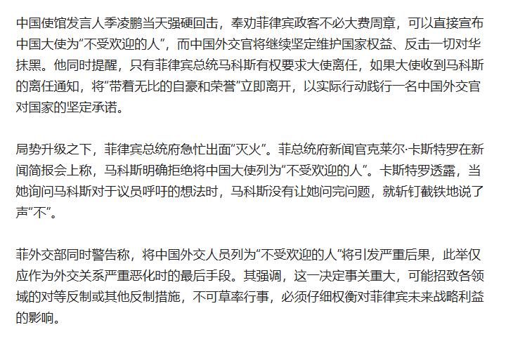 太好笑了,中国,你一定要冷静啊,你不冷静我们菲律宾就完了。[大笑] 猴子就是这样一个习性,你好好待它,它觉得自己就是王,当你的鞭子抽在它身上,它才知道你才是王。 菲律宾的参议员搞事情,宣布中国使馆人员为不受欢迎的人,结果吓得小马科斯赶忙灭火,说不。 我们怎么可能让你们一群小丑在那里恶心我们,马上反制,对炮制闹剧的那帮议员禁止入境。 结果,菲律宾外交部马上就喊要冷静。 菲律宾再这么闹,可能真的会被踢出东盟,要是真到了那一天。可能棉兰老岛的人要单独加入东盟,菲律宾这个国家是不是还存在都不一定了。 点右上角关注我,我们一起去看这个魔幻的世界